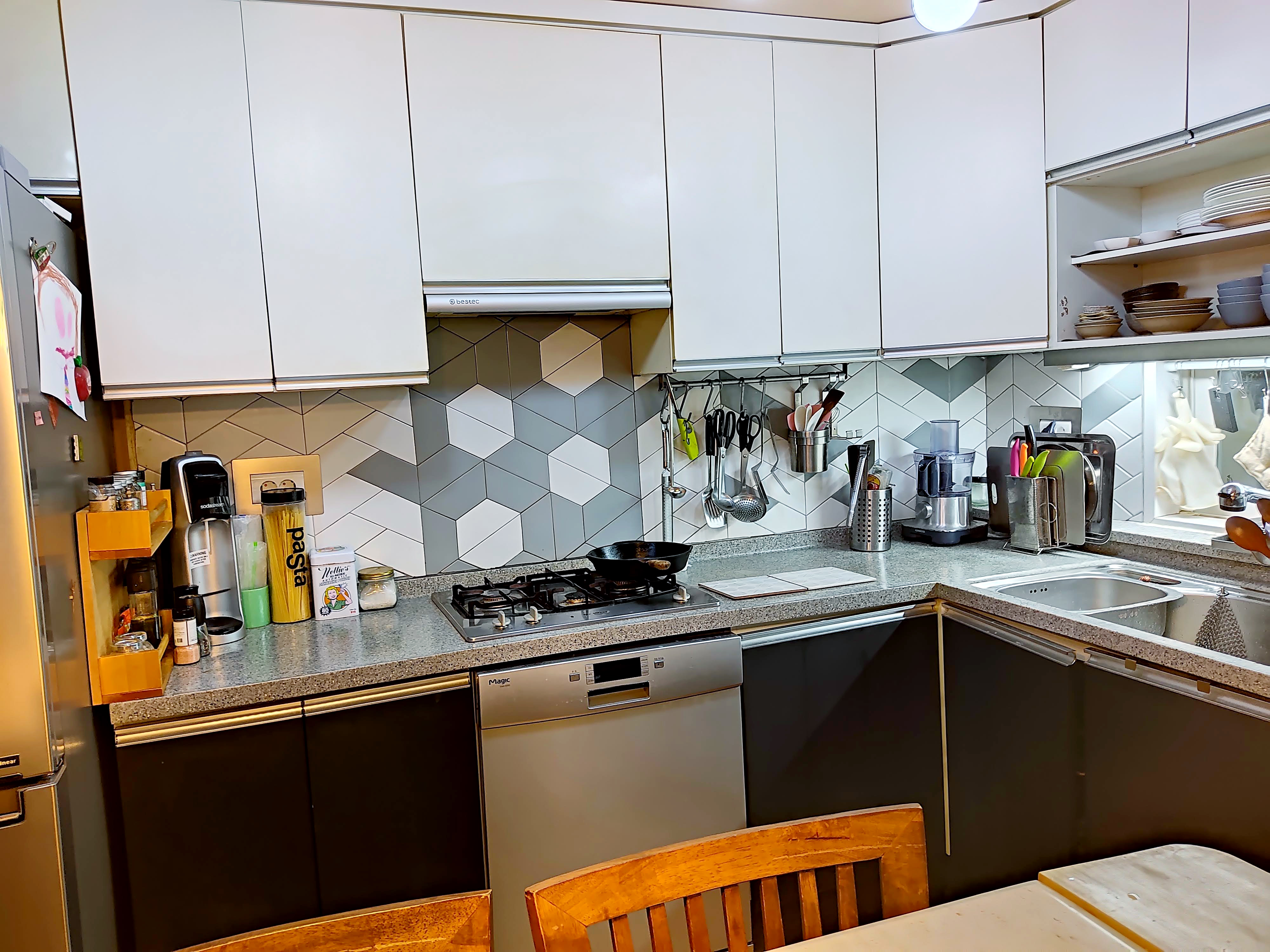 안녕하세요 꼼지락 미루입니다~ 오늘은 저희 주방을 소개해볼까 해요. 저희 집은 100% 제 손으로 바꾼 완전한 셀프 인테리어예요. 이리저리 찾아보며 실수해가며 바꾼 주방이라 조금 어설퍼도 예