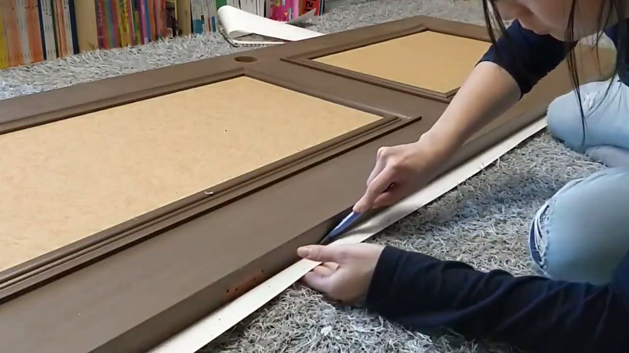 웨인스코팅이 없는 매끄러운 부분부터 시작하는데 꼭 문의 윗면부터 시작하세요..