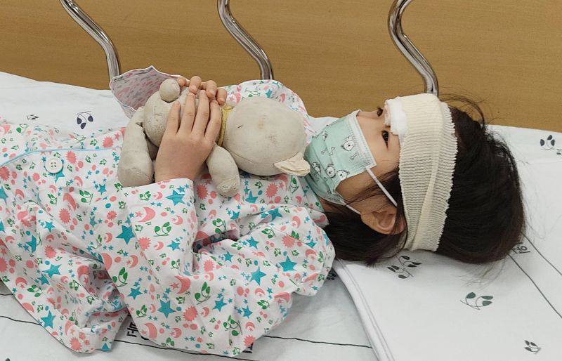 쿠앙이는 이마 부분을 크게 다쳤습니다. 상처가 매우 깊고 길었어요. 저녁을 먹기 전이라 아무것도 먹지 못한 채로 밤 12시까지 기다려야 했는데요. 이때 주의할 점은 아이가 처지는지, 구토 증상이 있는지 계속 주의하셔야 합니다. 머리를 부딪힌 것이기 때문에 뇌진탕이 있을 수 있니까요. 쿠앙이의 경우는 대학병원으로 간 것이 다행인 게 아이가 처져서 바로 CT를 찍어보았어요. 다행히 CT상 이상소견은 없었어요. 하지만 머리 쪽에 충격을 받아서 그런지 수술을 하기 위해 아무것도 못 먹은 아이가 구토를 하더군요. 정말 대신 아파주고 싶었습니다.