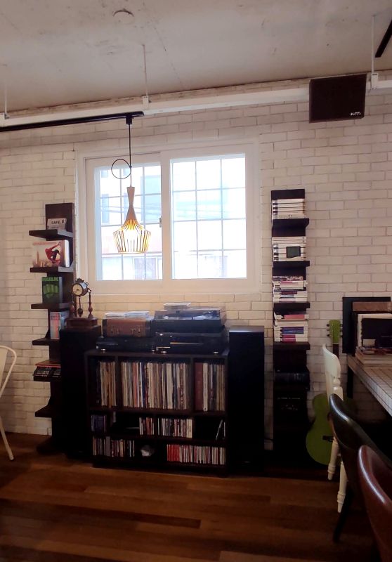 창문 앞으로는 커다란 스피커와 LP판이 놓여있어 향수를 자극합니다.