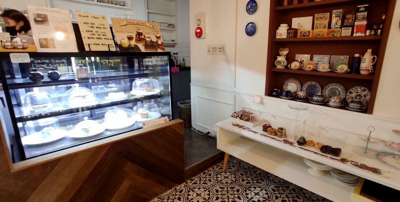 메뉴는 일반적인 커피와 티 위주의 메뉴로 구성되어있고 요기거리로 간단한 케이크와 쿠키들 빵들이 구비되었어요.