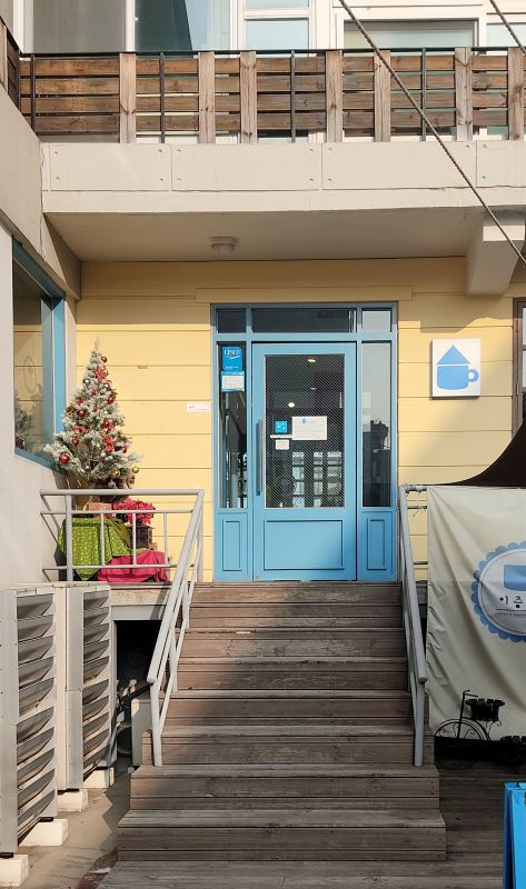 대문 안으로 들어오면 오래된 구옥을 리모델링하여 카페를 만든 곳으로 노랑 벽과 파랑 대문이 보이는 2층으로 올라오면 도착입니다. 어렸을 적 단독주택의 모습이 반가워서 괜스레 어릴 때로 돌아간 것 같은 기분이 들었습니다.