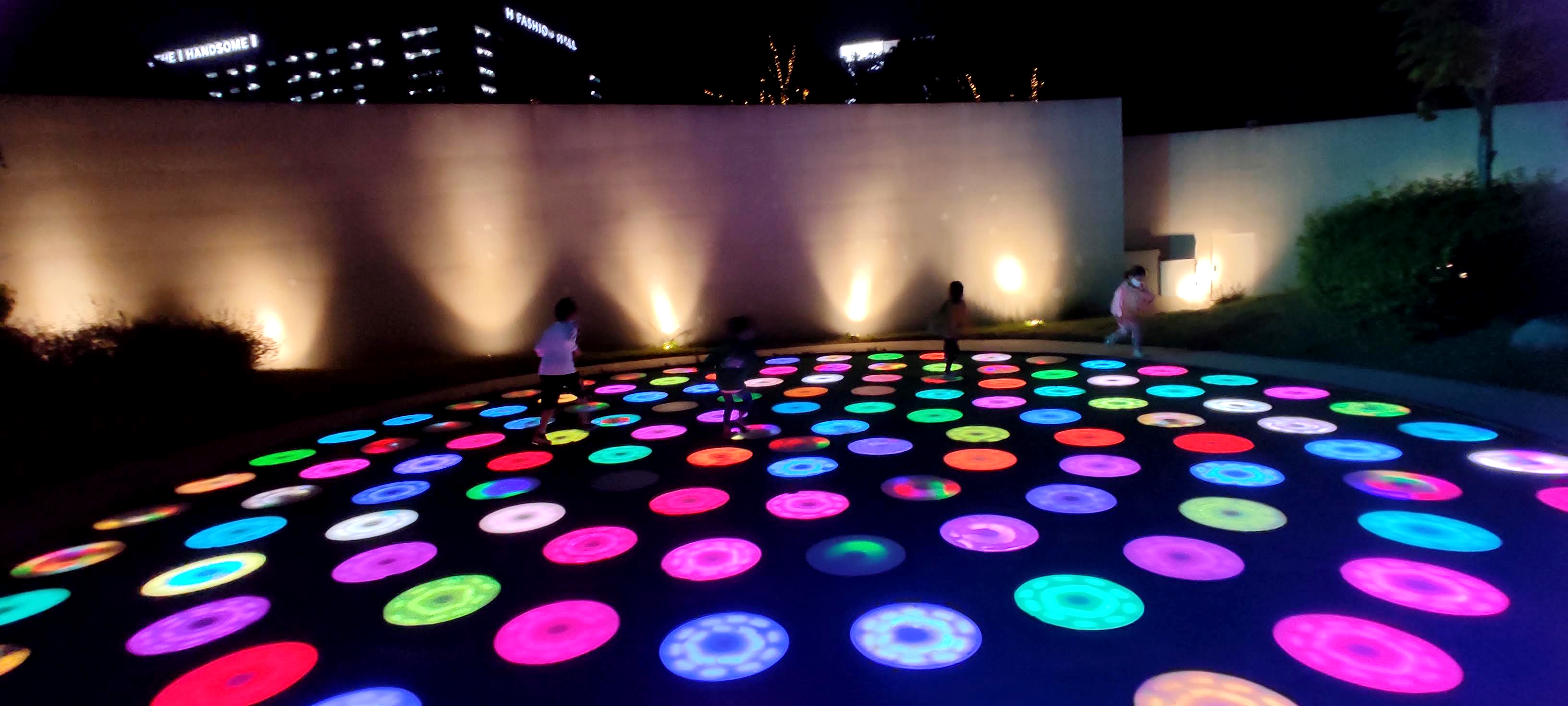 라이팅쇼는 2가지가 있는데요 입구 근처에 있는 로맨틱 가든 18:00, 19:00, 20:00, 21:00 이렇게 정각에 노래에 맞춰서 불빛이 춤을 춰요. 분위기 있는 곡부터 아이들이 좋아하는 노래까지 나와서 어른들 아이들 모두 좋아합니다.