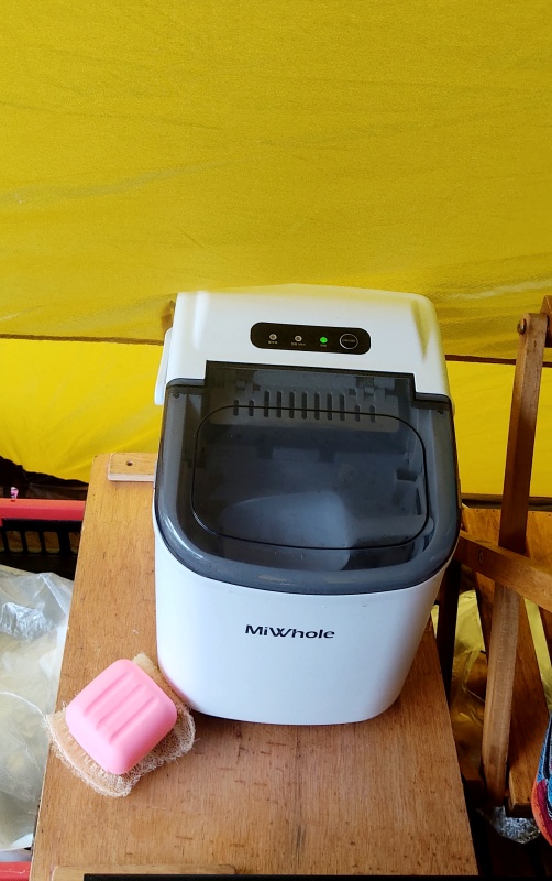 이번에 새롭게 구매한 캠핑용품! 미니 제빙기! 물놀이를 하러 간 사이에 얼음을 가득 만들어놓았네요. 이 얼음은 아이스 박스에 넣어 냉장고를 대신하기도 하고 워터 저그에 넣어 시원한 물을! 텀블러에 넣어 시원한 콜라도 마실 수도 있습니다.