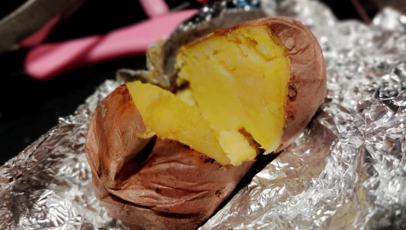 숯을 켠 김에 고기도 구워 맛있는 저녁 타임 어느새 해가 저물며 캠핑이 무르익어 갑니다. 숯을 다 쓰고 나서 장작을 집어넣습니다. (숯의 불씨가 남아있을 때 장작을 넣으면 쉽게 불이 붙어요.) 고구마도 장작에 던져 넣고 마시멜로우도 구워 먹습니다.
