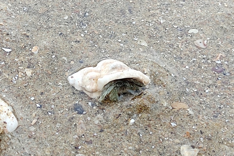 파도가 치는 곳에는 소라게들이 돌아다니고, 아무 생각 없이 모래 놀이를 하다가 바다 모래 밑에 있던 조개를 캐내곤 합니다.
