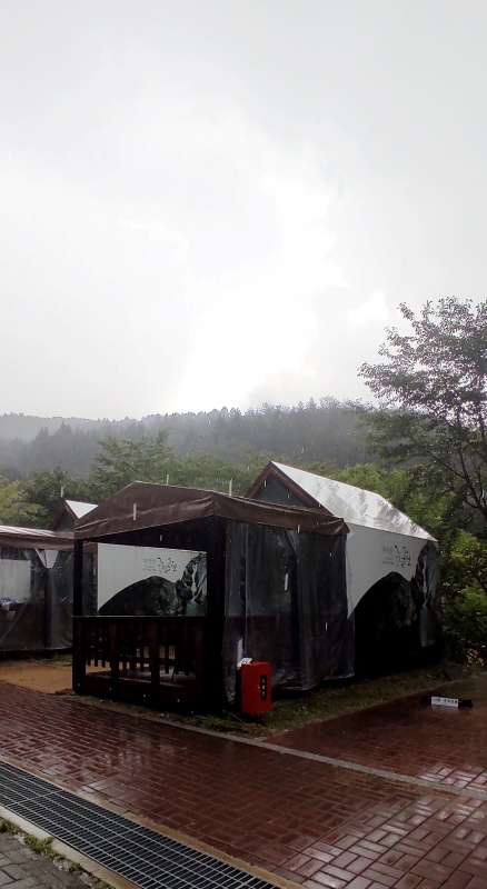 제가 간 날은 갑자기 장대비가 미친 듯 쏟아지고 있어 자동차 야영장 쪽이 많이 시끌시끌했습니다.