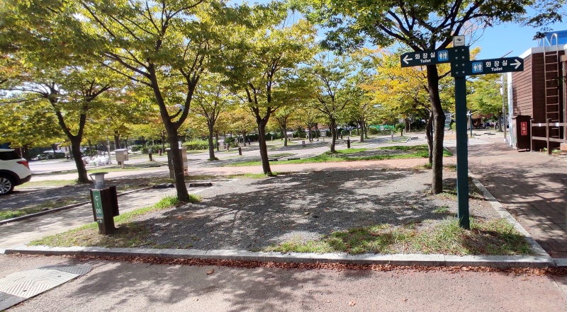 D구역의 제일 안쪽인 D-17 은 바로 옆쪽으로 화장실을 끼고 있는데요 바로 옆 D-18 사이트가 사용불가여서 넓게 사용할 수 있습니다. 다만 화장실 옆에 흡연자가 많으니 아이들을 데리고 캠핑한다면 피해야 할 것 같습니다.