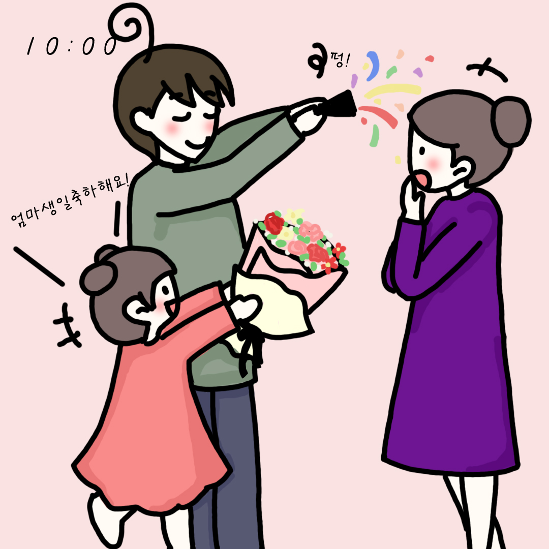 '아빠 일어나요~ 엄마 생일 축하해야지요~'하니까 일어났어"