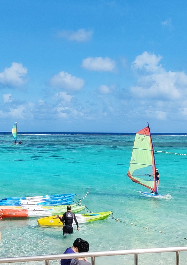 저희가 갔을 때 괌날씨가 별로 좋지 않았어요. 2~3일에 비가 내라다 말다 내리다 말다 했는데 이때 패들보트 신청하니 날씨 때문에 안된다고 하더라고요. 마지막날에는 맑았지만 체크아웃시간에 쫓기다 결국 타보지 못한 게 아쉬웠습니다.