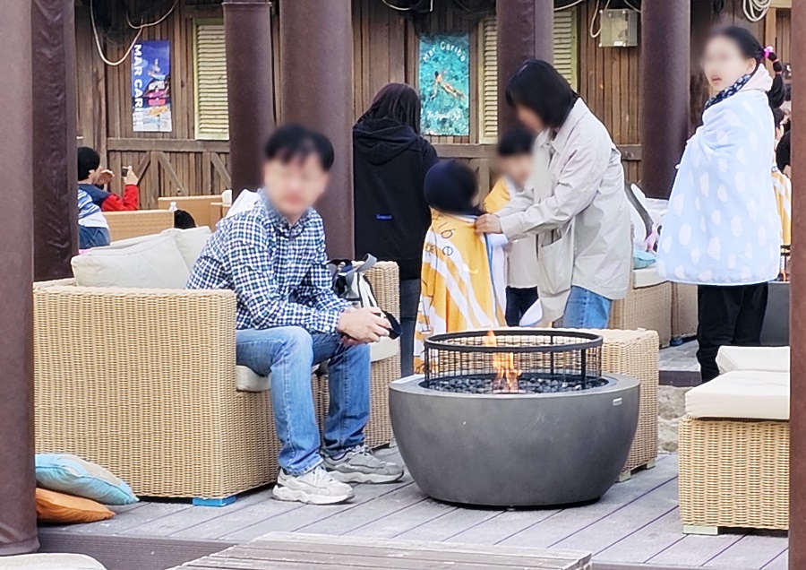 가장 인기가 많은 자리는 불멍을 할 수 있는 자리는 A존에 불멍을 할 수 있는 데크자리예요. 4자리뿐이라 이미 만석 낮에는 불이 없는데 저녁 5시쯤부터 이렇게 불이 올라오더라고요. 다만 아쉬운 점은 7시면 마감을 하는데 이때까지 해가 저물지 않아서 불멍을 하기엔 아쉬움이 남습니다.