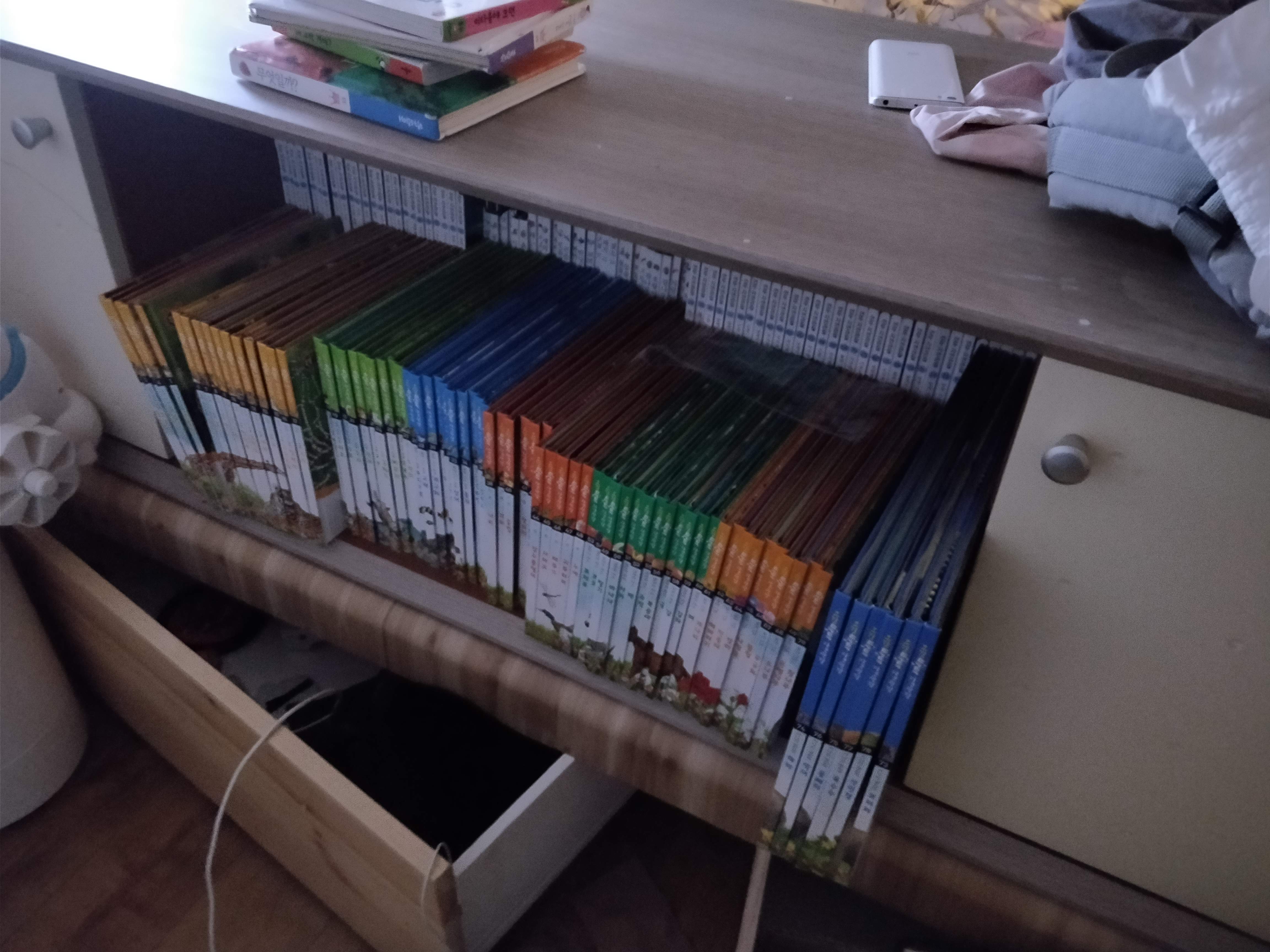 지금은 없는 티비장에 몇 겹으로 쟁여놓았어요.