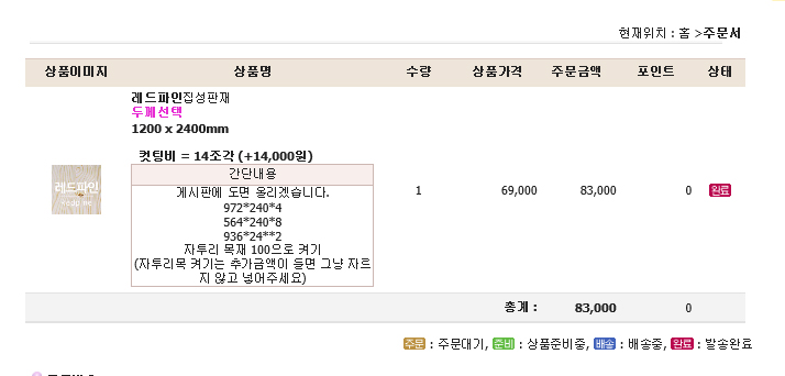 어차피 저희 집 차로 배송이 불가능하여 인터넷 목공소를 이용하였어요.