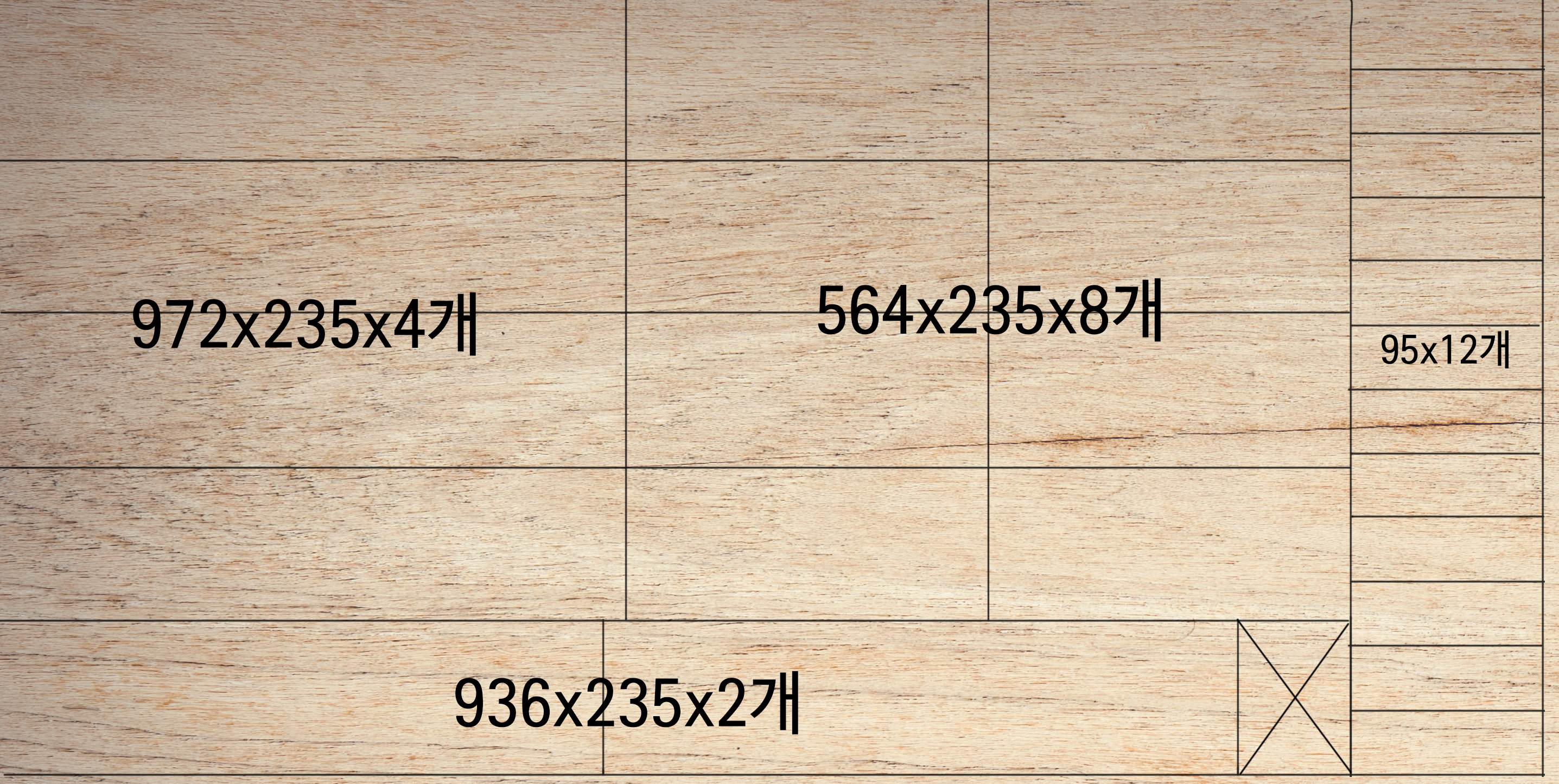 - 한판의 크기는 2400*1200mm로 최대한 자투리 없이 가공