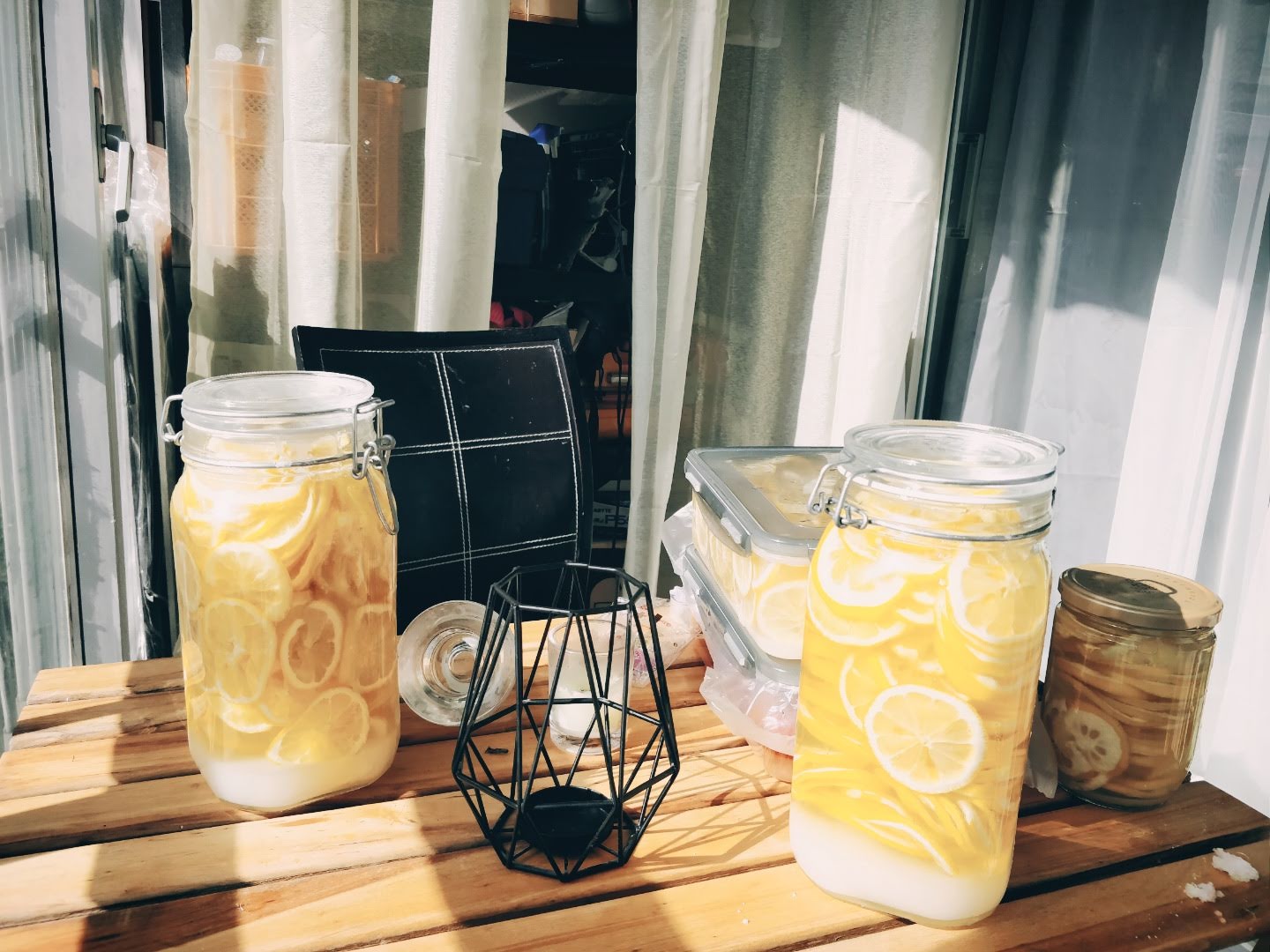 설탕이다 녹을 때까지 베란다에서 놔두었어요.