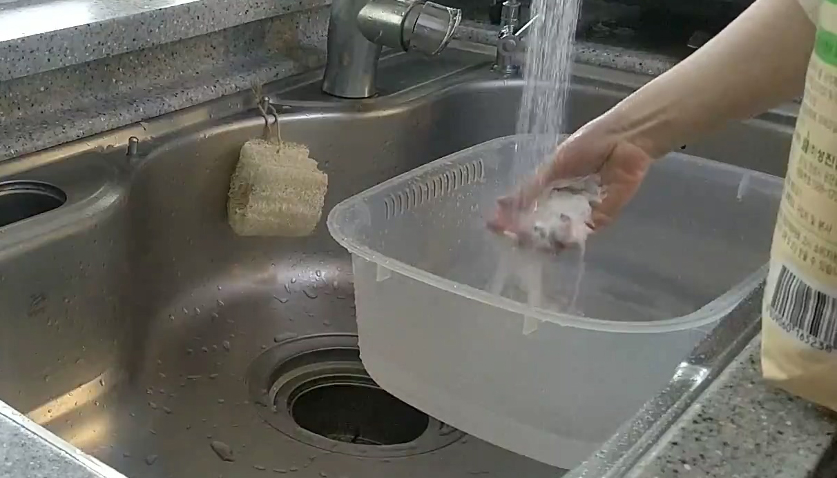 마지막으로 끓는 물에 3초간 넣고 건져주시면 세척 완료