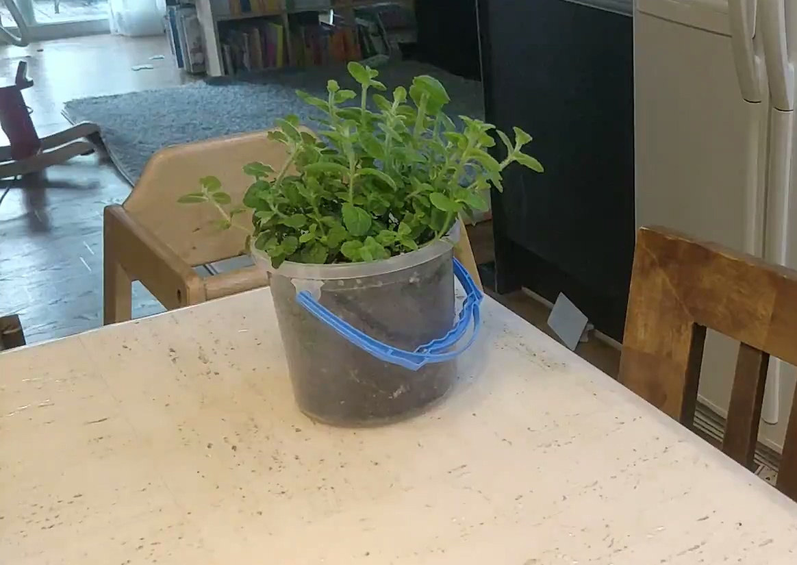 아이들 반죽 놀이 통에 심었던 애플민트를 따서