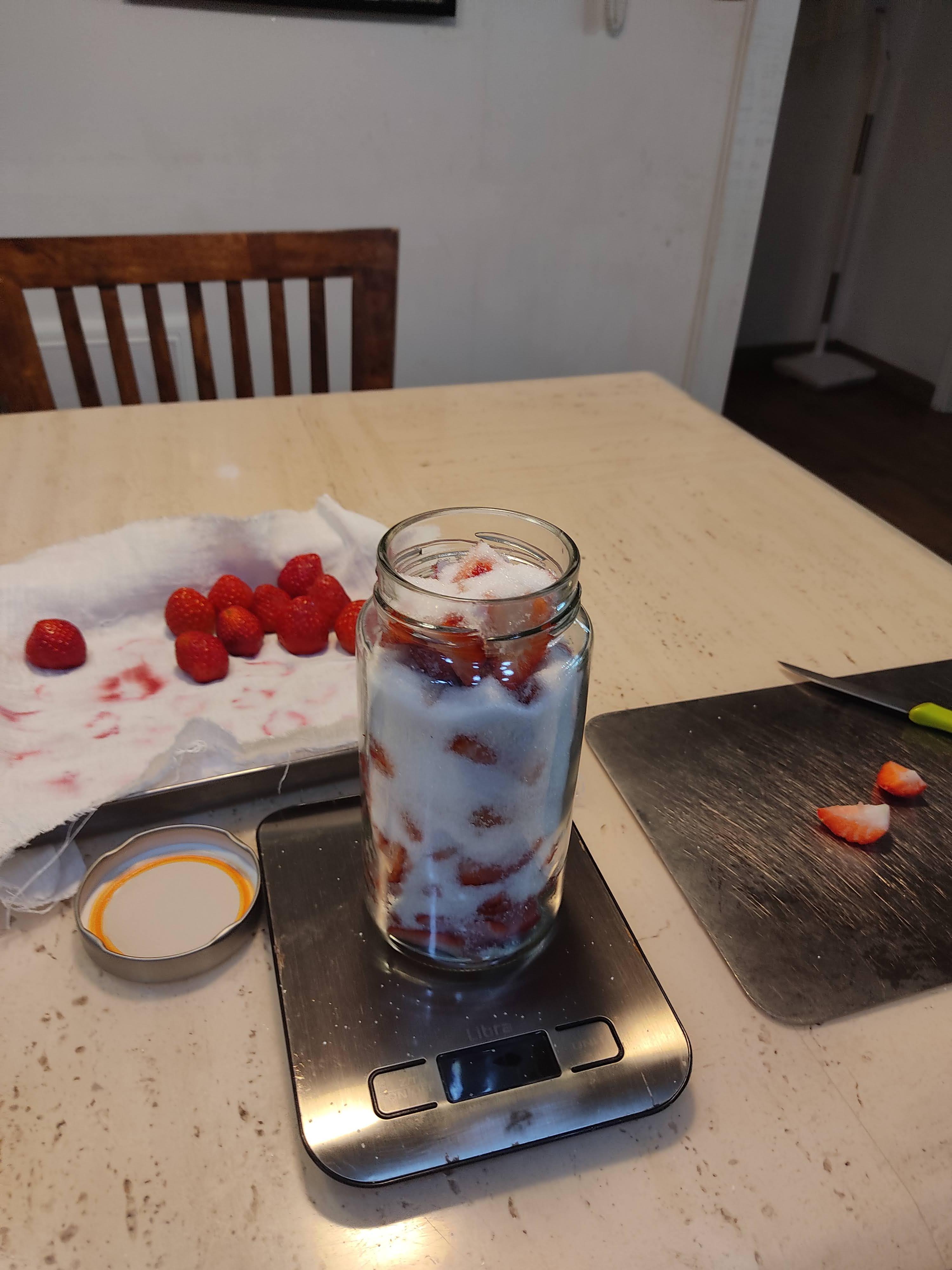 딸기가 이미 달기 때문에 설탕:딸기 비율을 4:6으로 했어요.