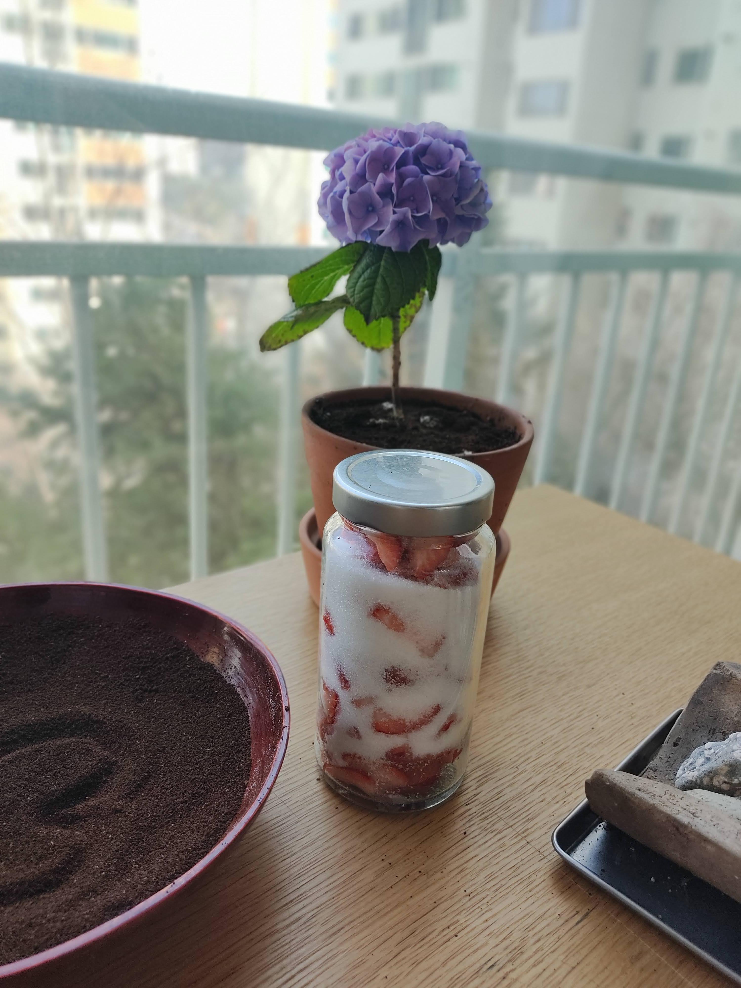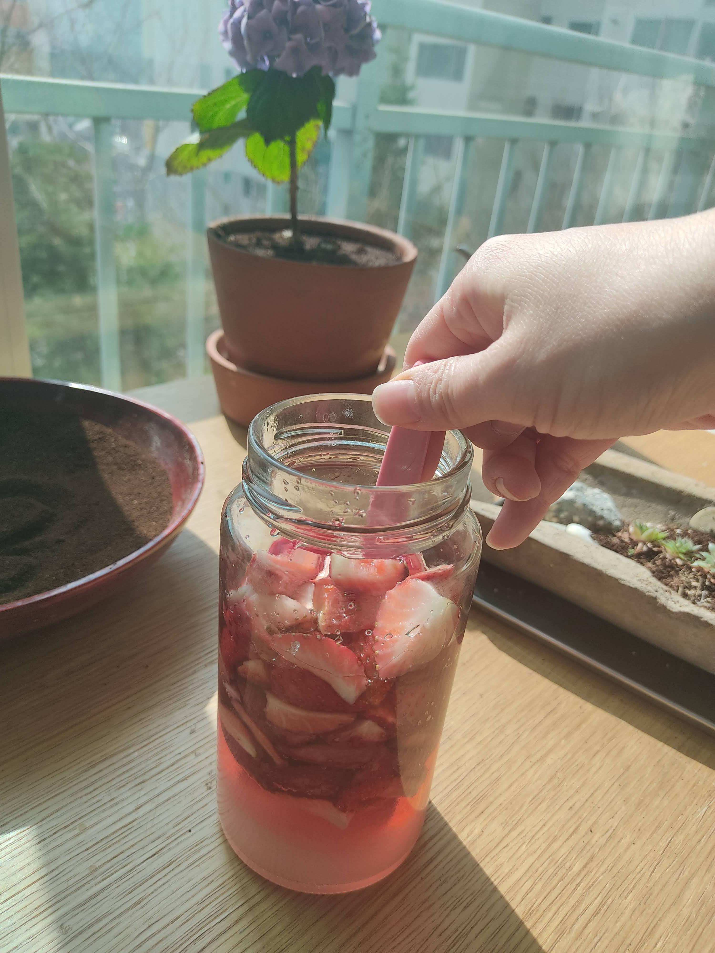 완성한 딸기청~ 이제 햇볕의 따스함이 딸기청을 맛있게 해 줄 거예요~