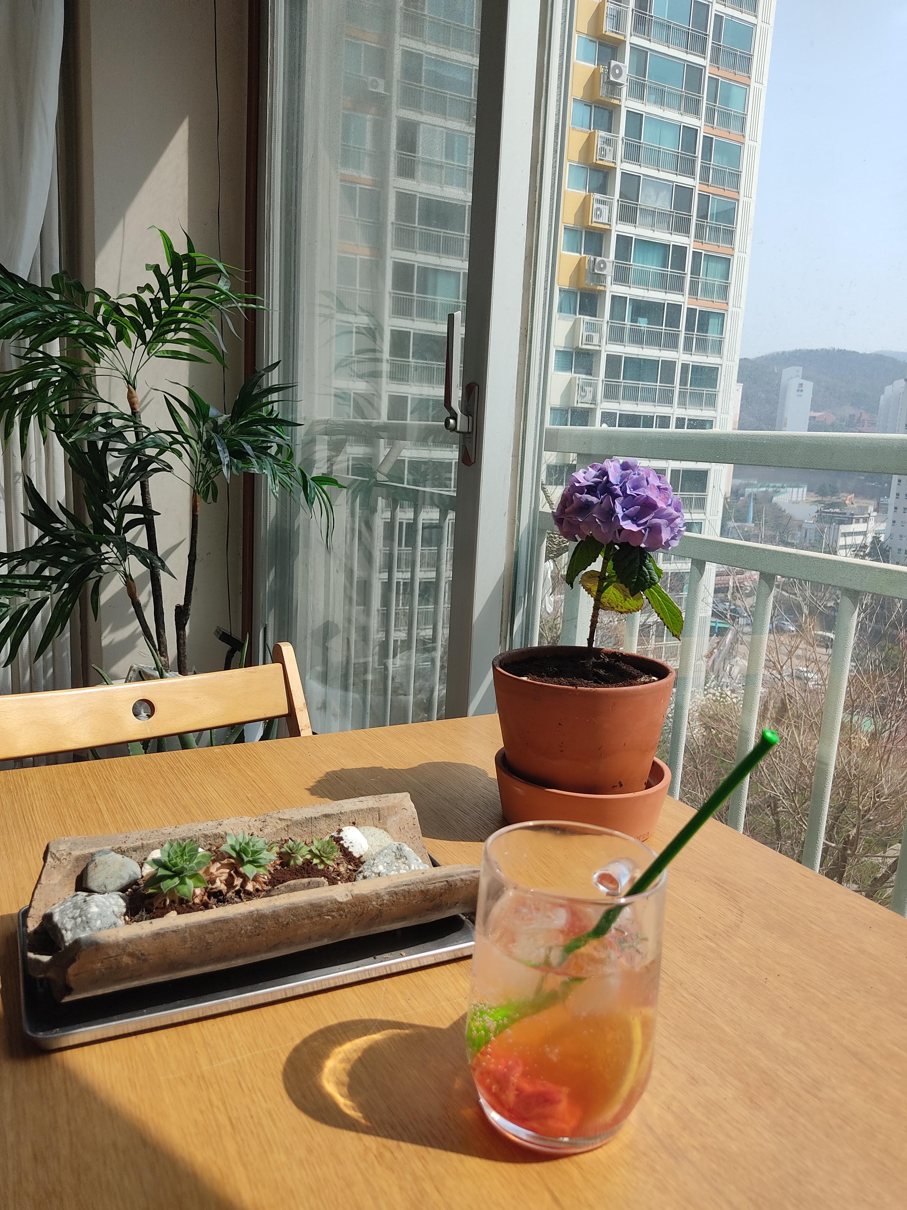 한가로운 오후 베란다 카페에서 음악을 들으며 마시면
