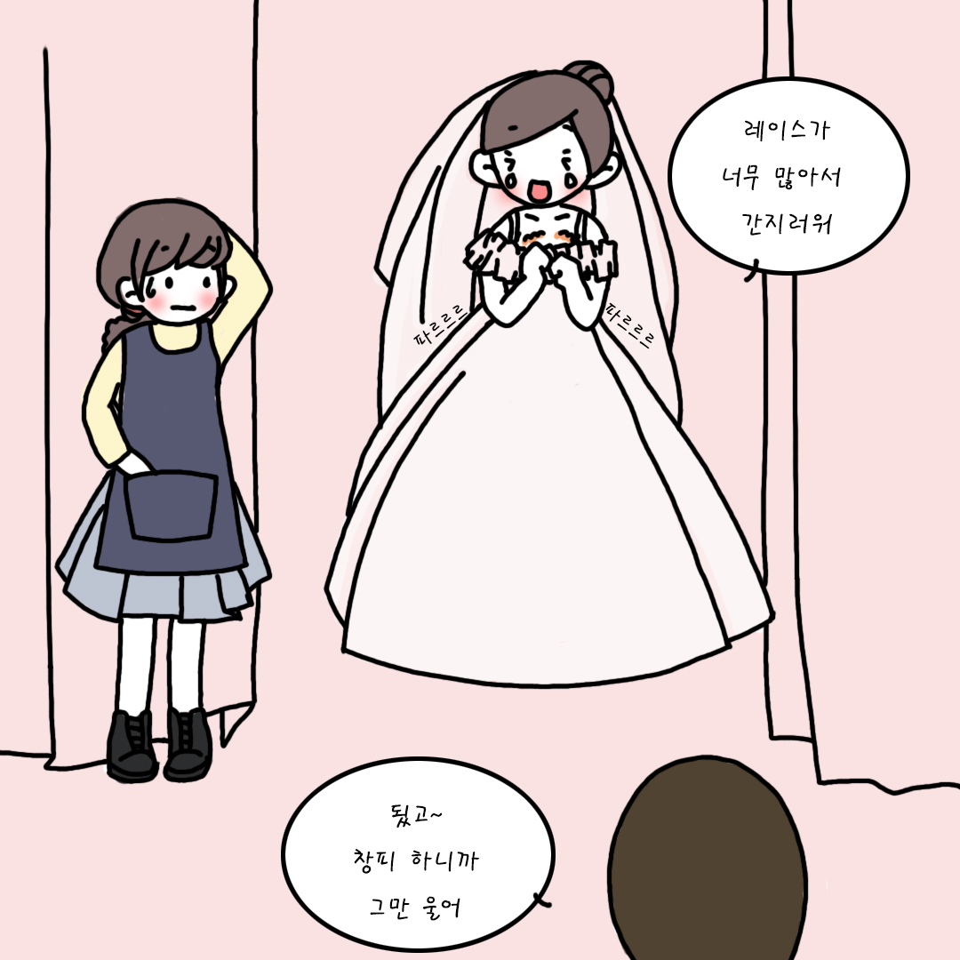 저의 웨딩드레스는 예쁜 것보다 안 간지러운 옷이 여야 한다 라고요!ㅎㅎ