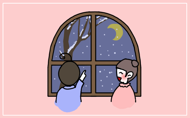 장난꾸러기 쿠앙이와 쿠웅이는 밤에 내리는 눈을 보고 이미 내일 나가 놀 궁리를 하네요.