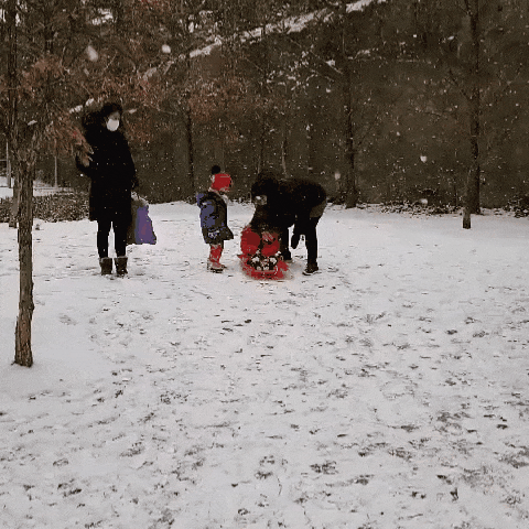 지인이 요즘 없어서 못 산다는 눈썰매와 스노우볼메이커(눈집게)를 가져왔어요.