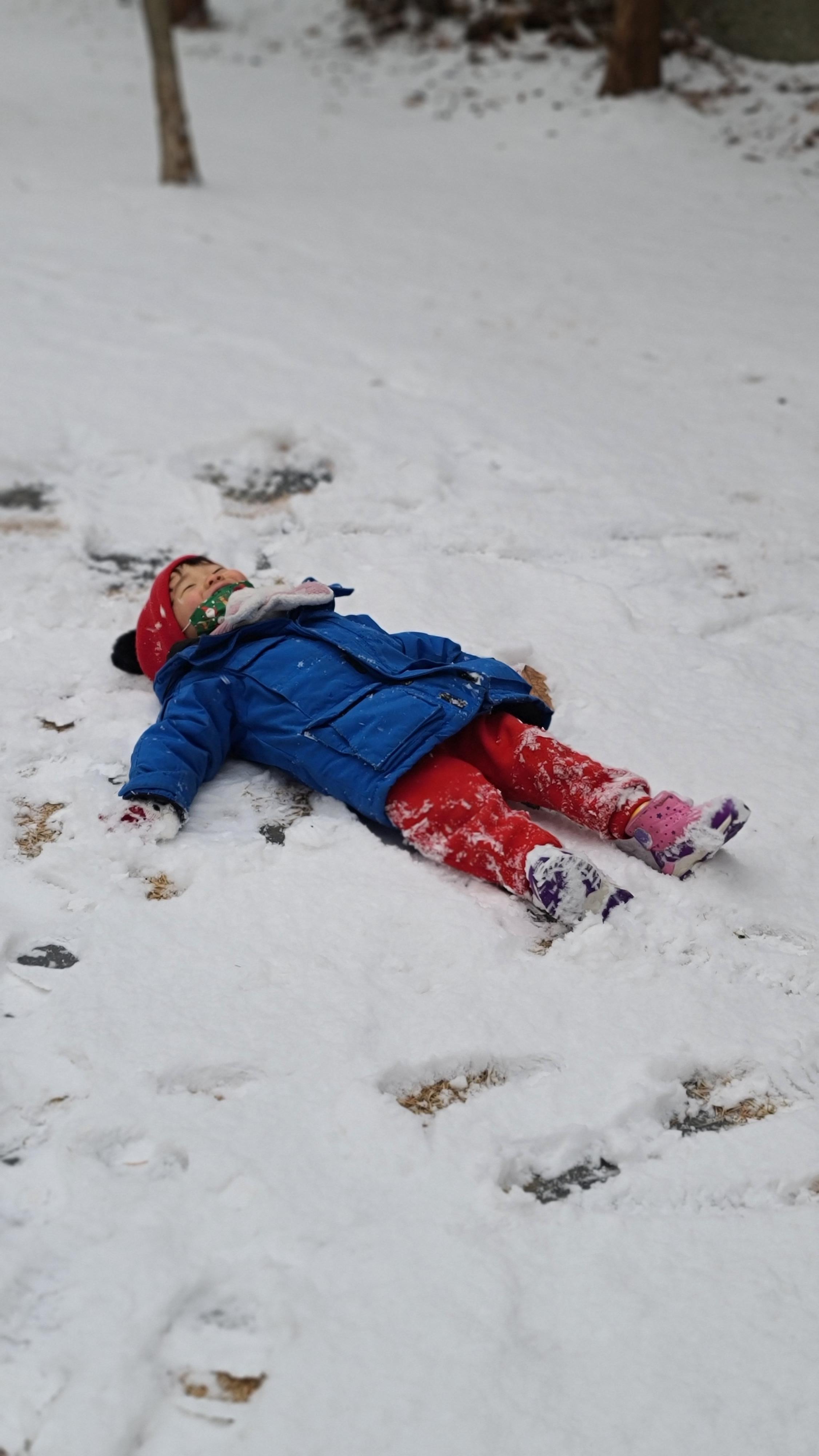 장난꾸러기 쿠웅이는 눈에 벌러덩 누워 장난도 치고요..