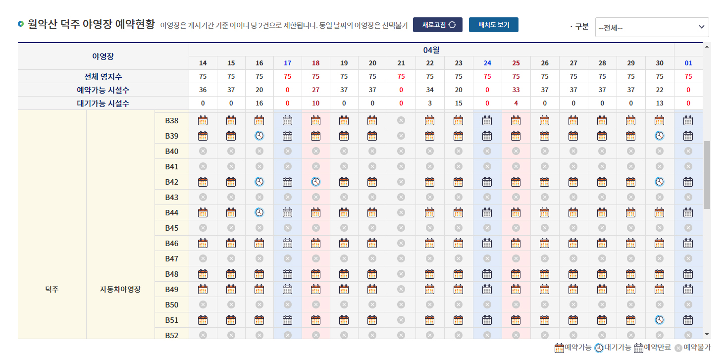 대기로 있었던 '월악산 국립공원 덕주 야영장'에서 예약신청이 와서
