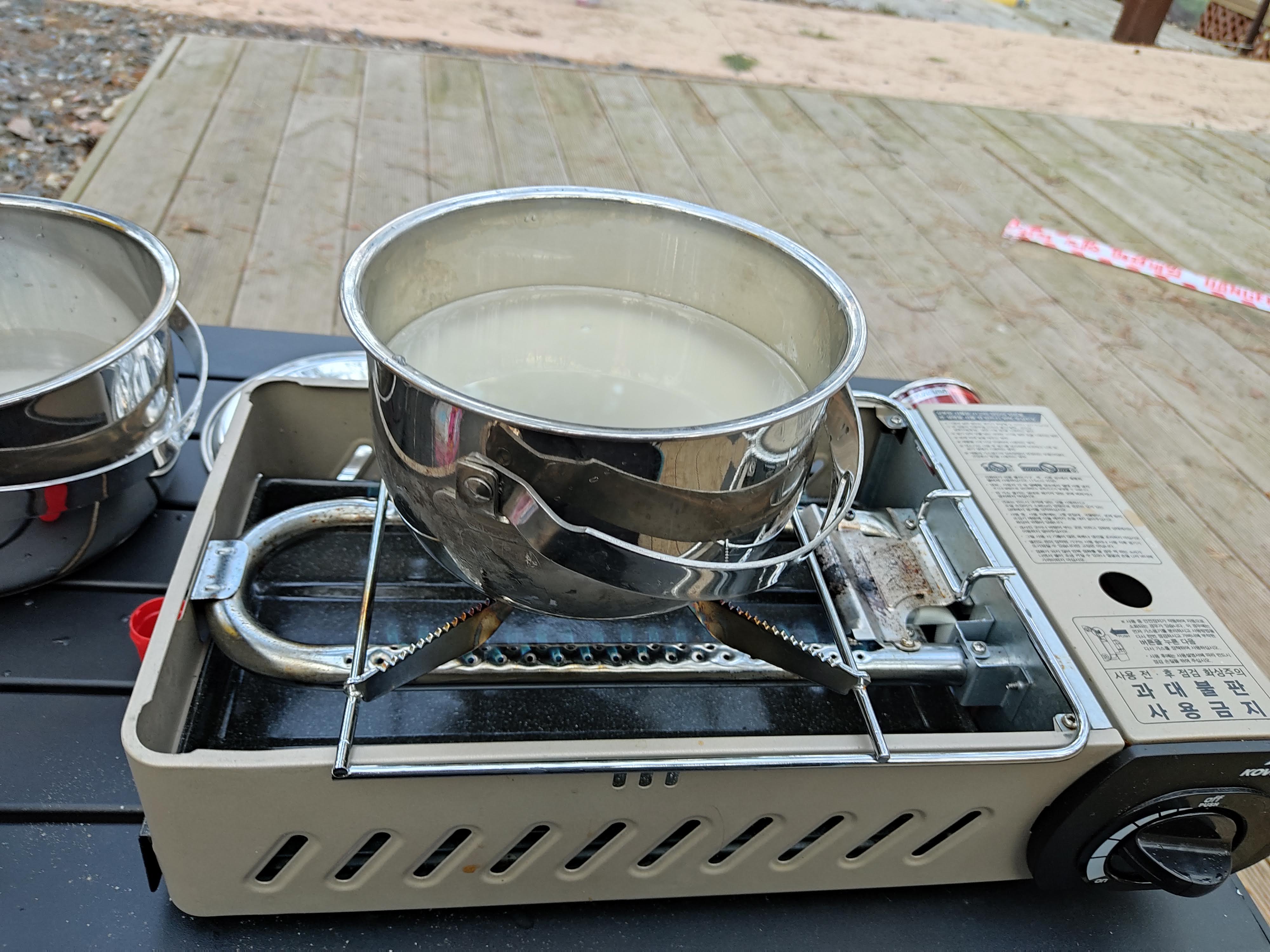 뚜껑을 닫고 하시는 분도 있는데 저는 열악한 캠핑환경에서 끓어 넘친
