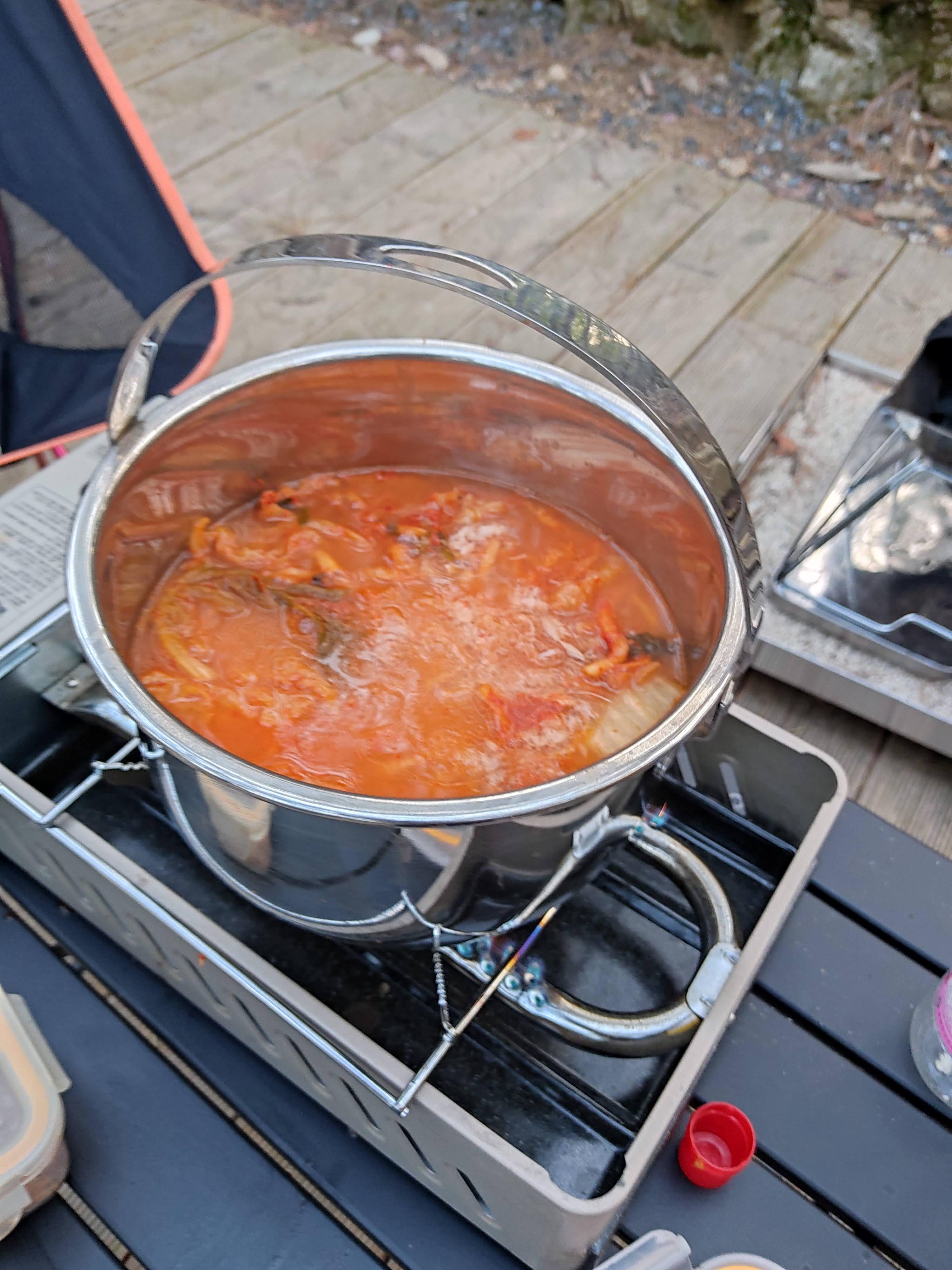 뚜껑을 닫고 하시는 분도 있는데 저는 열악한 캠핑환경에서 끓어 넘친