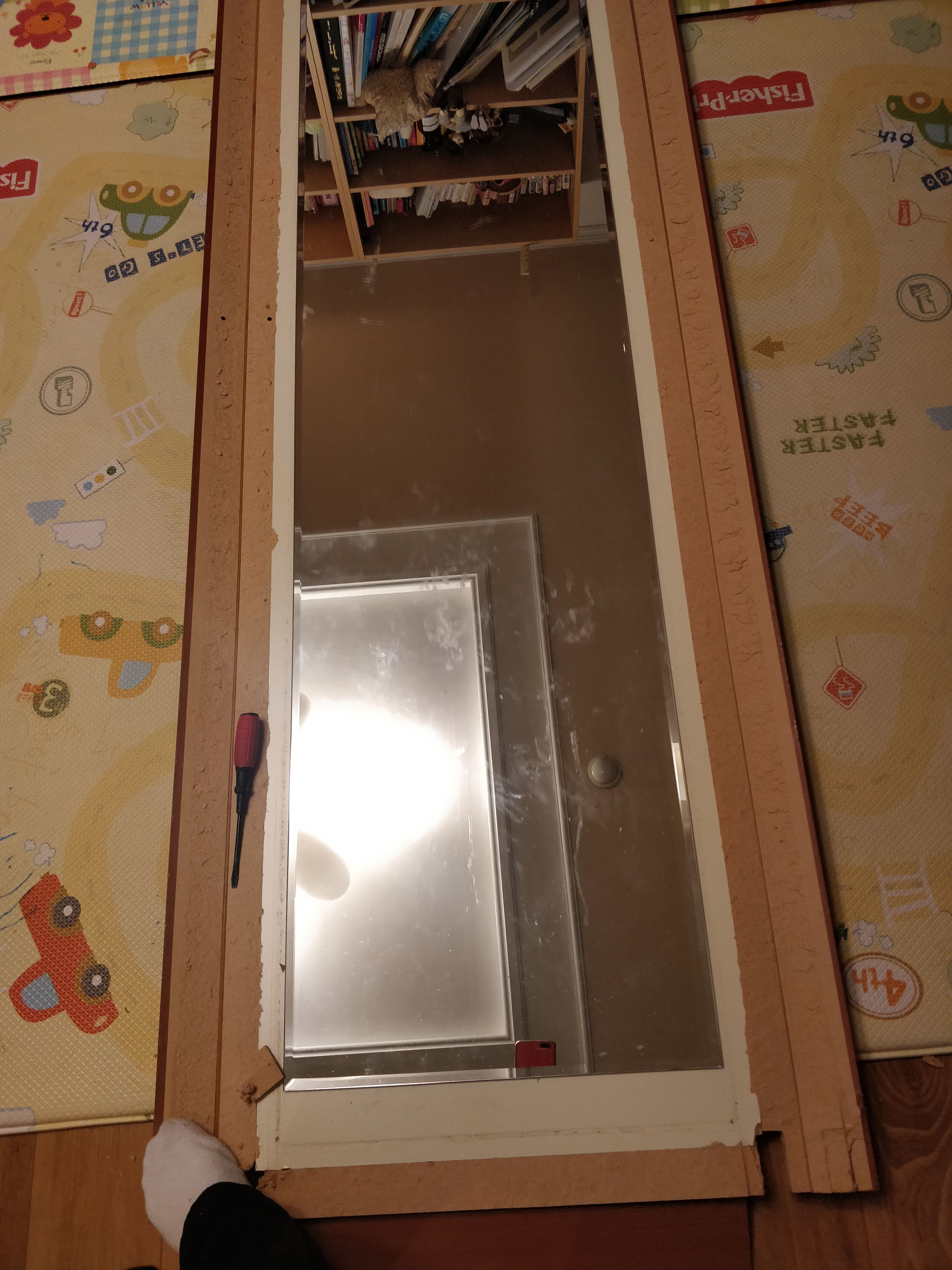 철거할 때 문을 잡아주실 분과 같이하세요. 저는 문이 무게를 못 이기고 퍽하고 부서지며 넘어가 버렸어요. 정말 위험할뻔했답니다