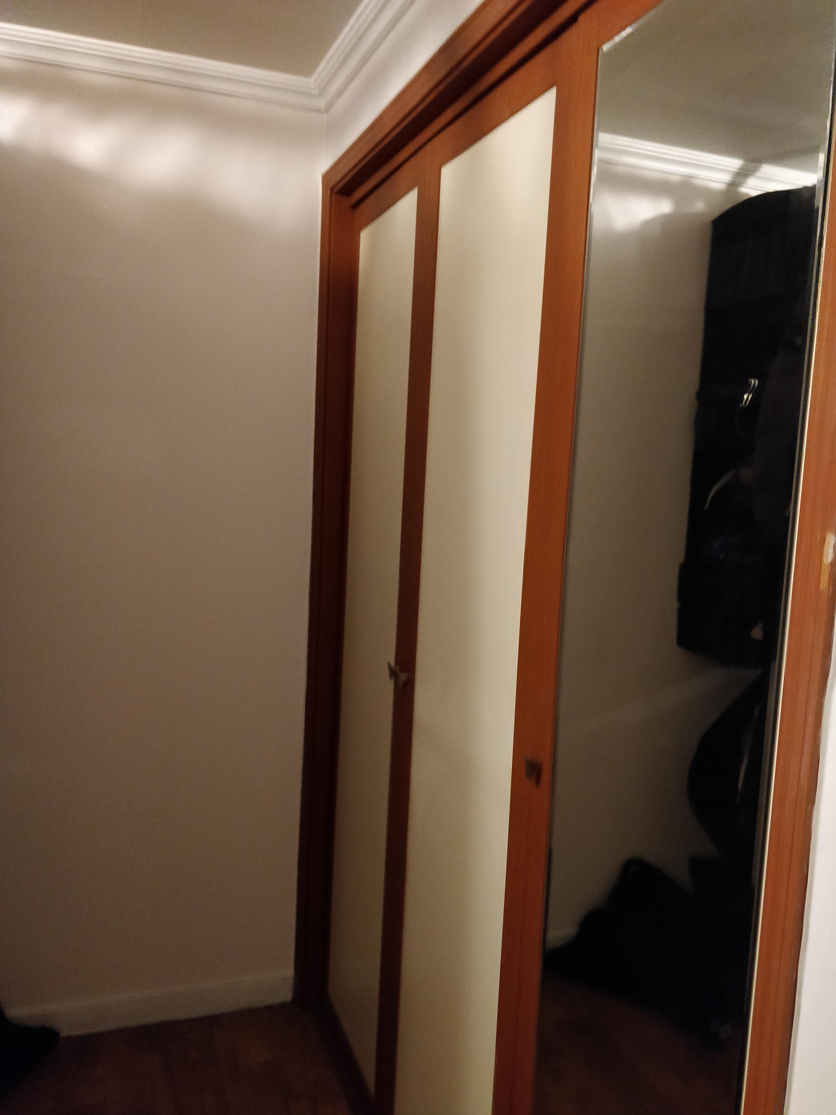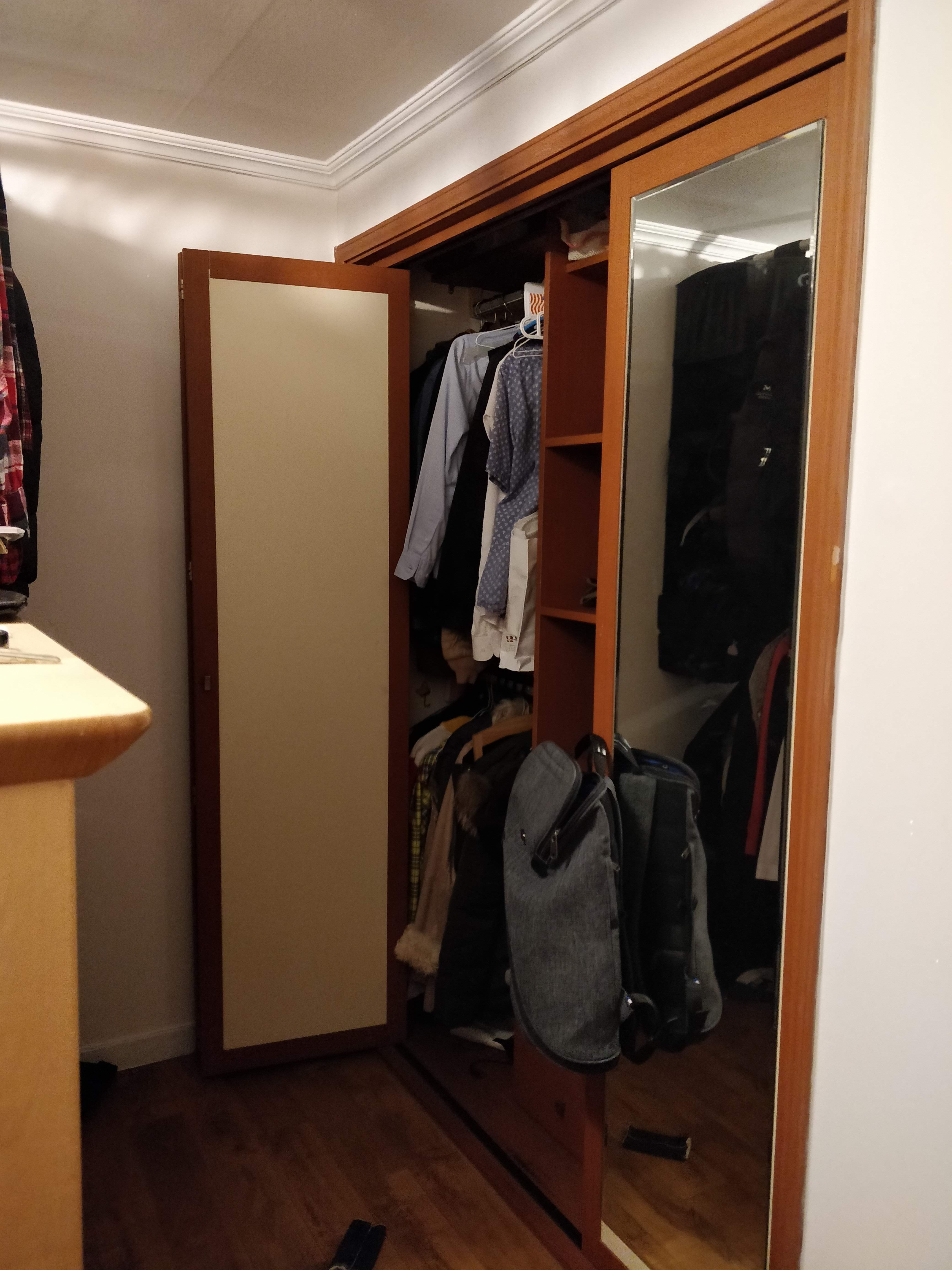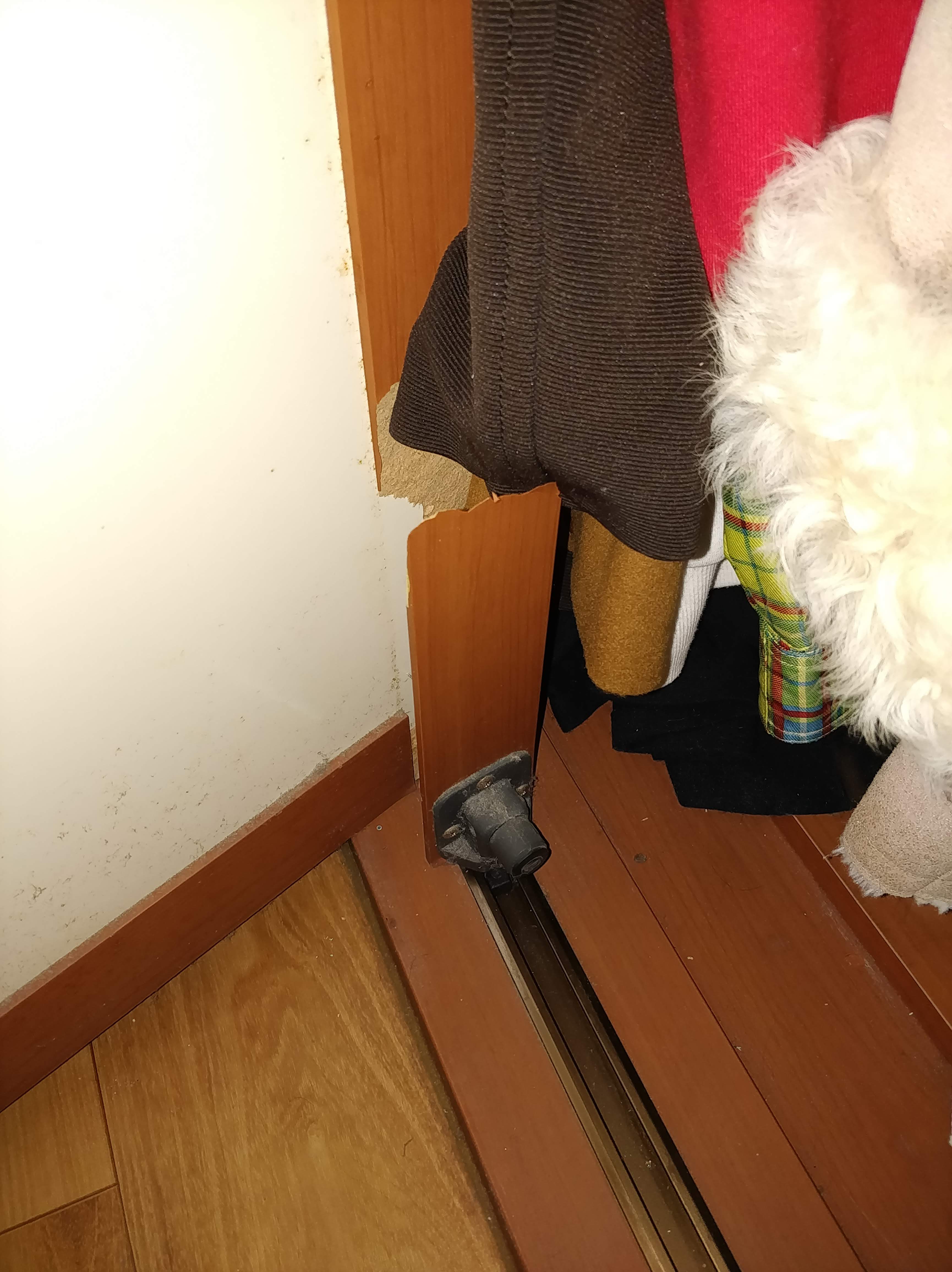 근데 문제가 또 있습니다 무거운 붙박이장 문 때문에 레일이 버티지 못하고 어느 순간 닫지도 못하고 열어놓고 쓰고 있었어요.