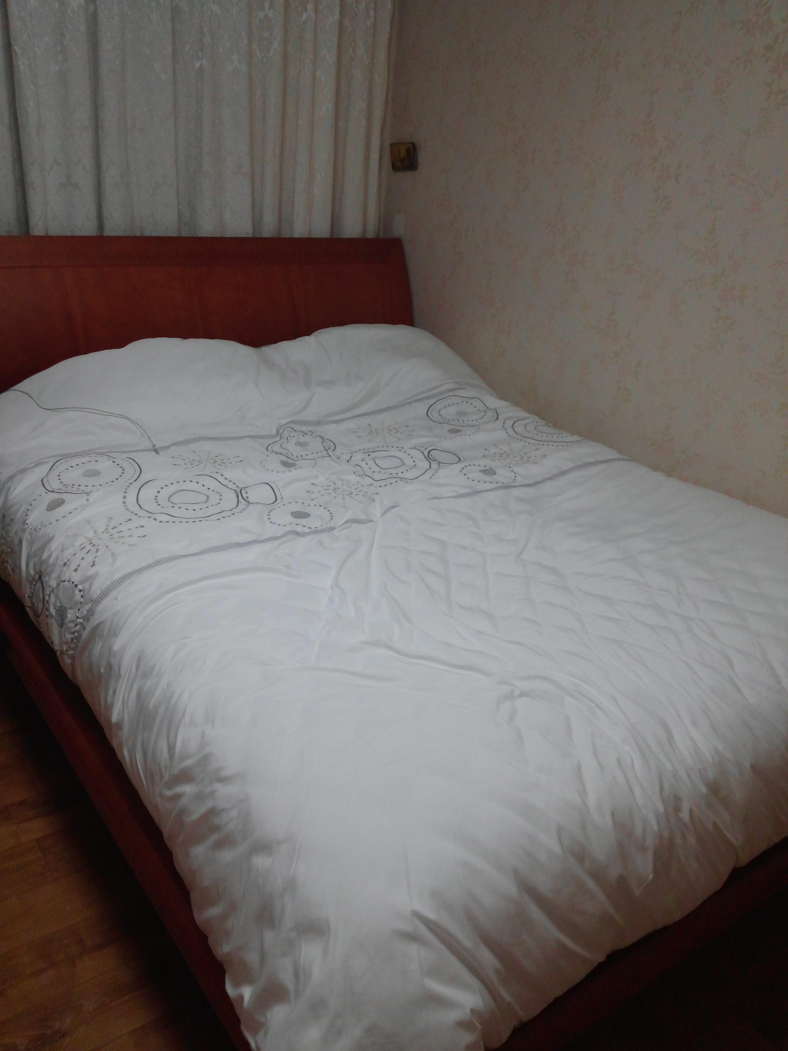 첫 신혼방~ 무거워 보이는 커튼과 원래 루나군이 쓰던 체리색 침대! 벽지는 누런색에 가까운데 꽃무늬가 여간 거슬리는 게 아니었어요.