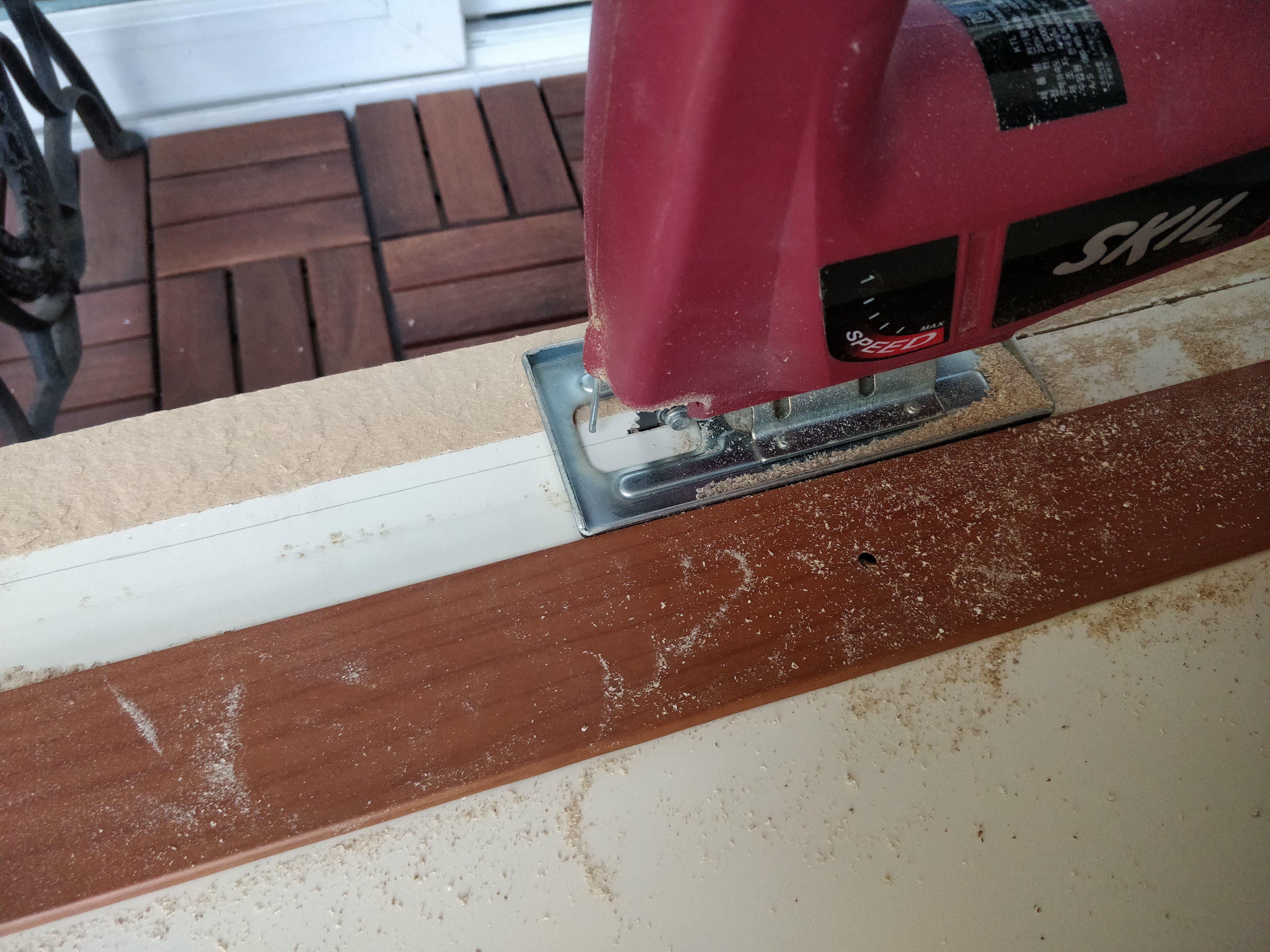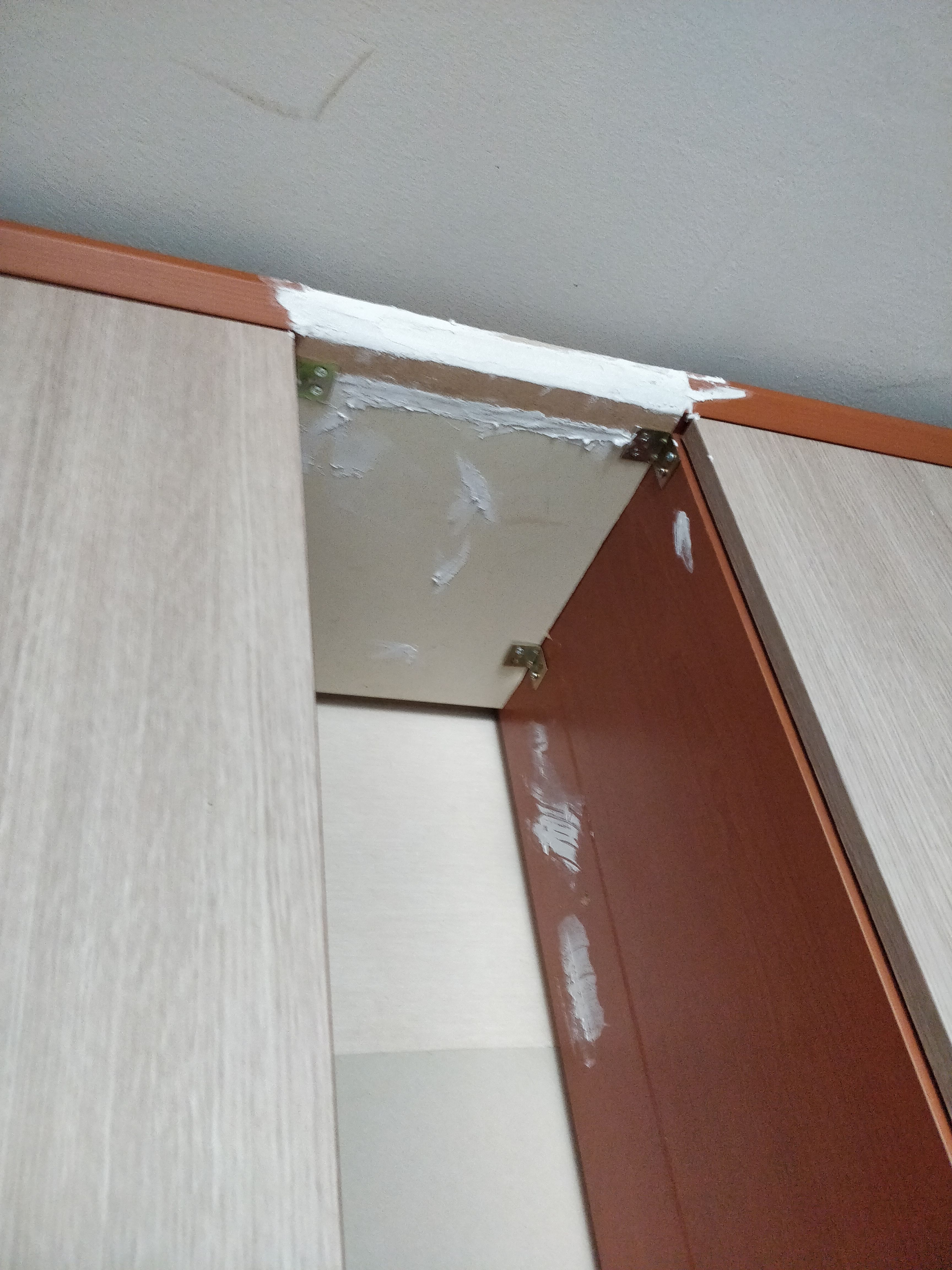 위쪽에 합판과 함께 붙여줍니다. 원래 하나의 가구였던 것처럼 보이게 하는 마술입니다!