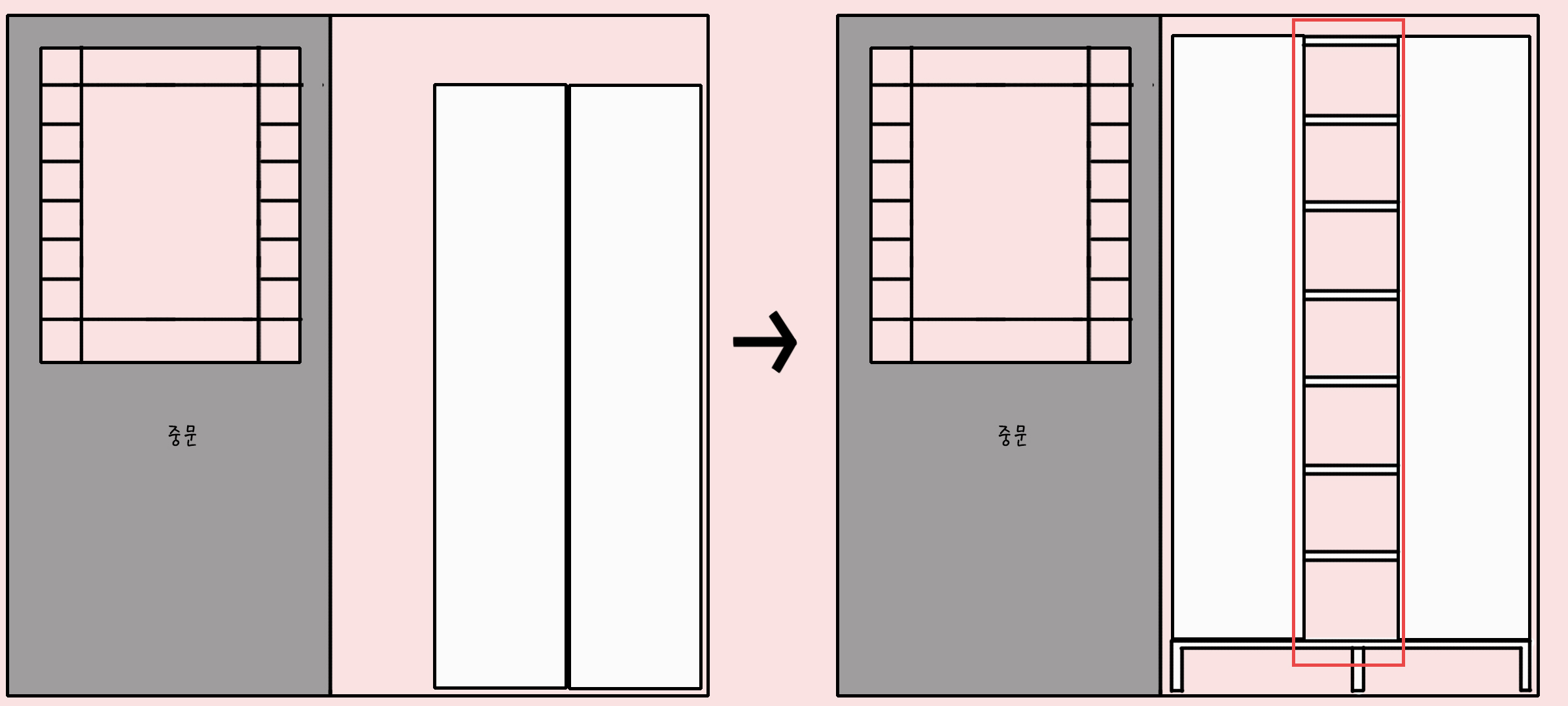 근데 이 신발장이 있는 공간이 아깝다고 여긴 어머님께서 신발장을 아예 전실에 놓고 싶어 하셔서