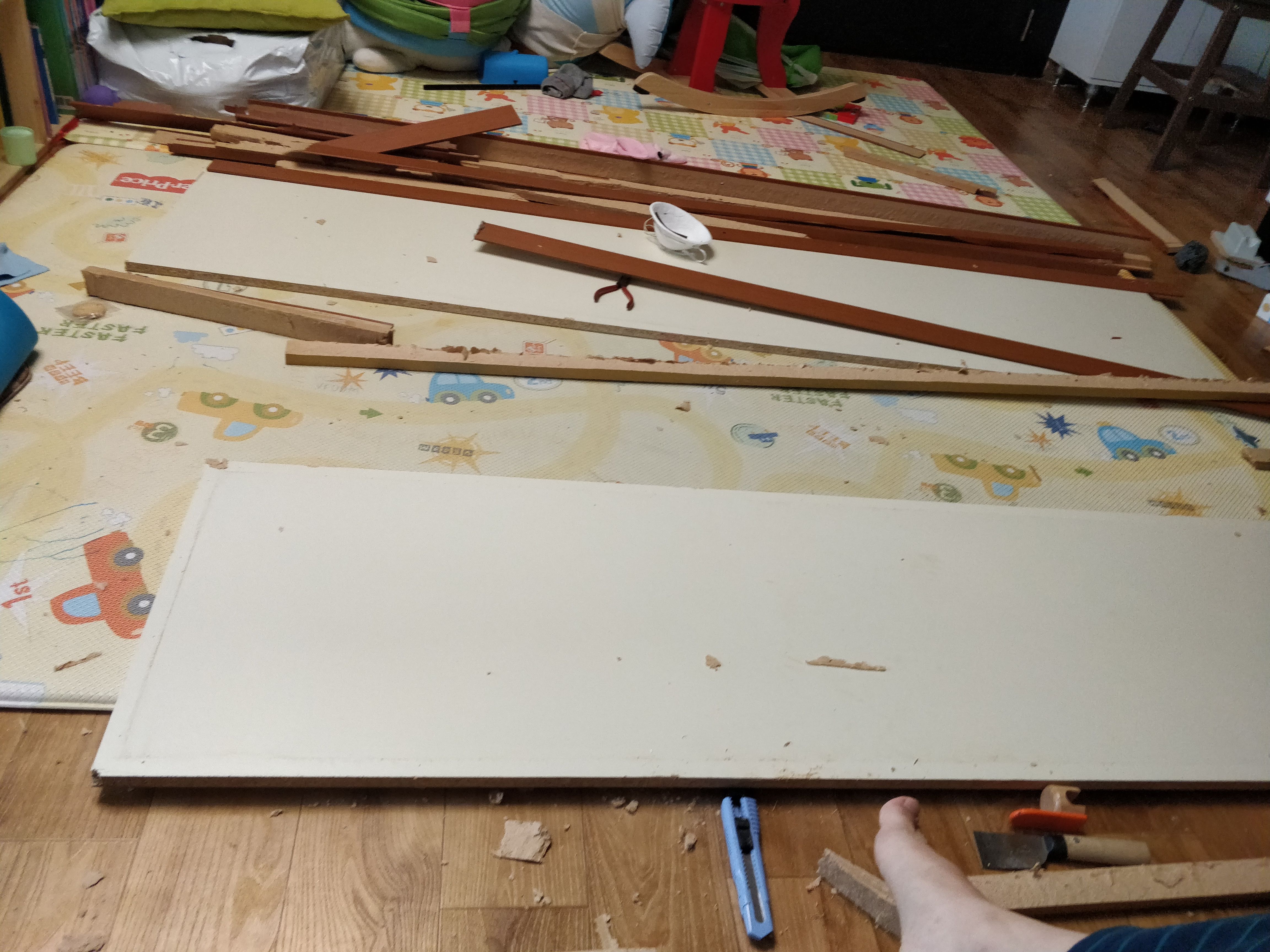 붙박이장 문을 뜯어낸 목재가 있거든요 ㅎㅎ (이렇게 이어지나. .)