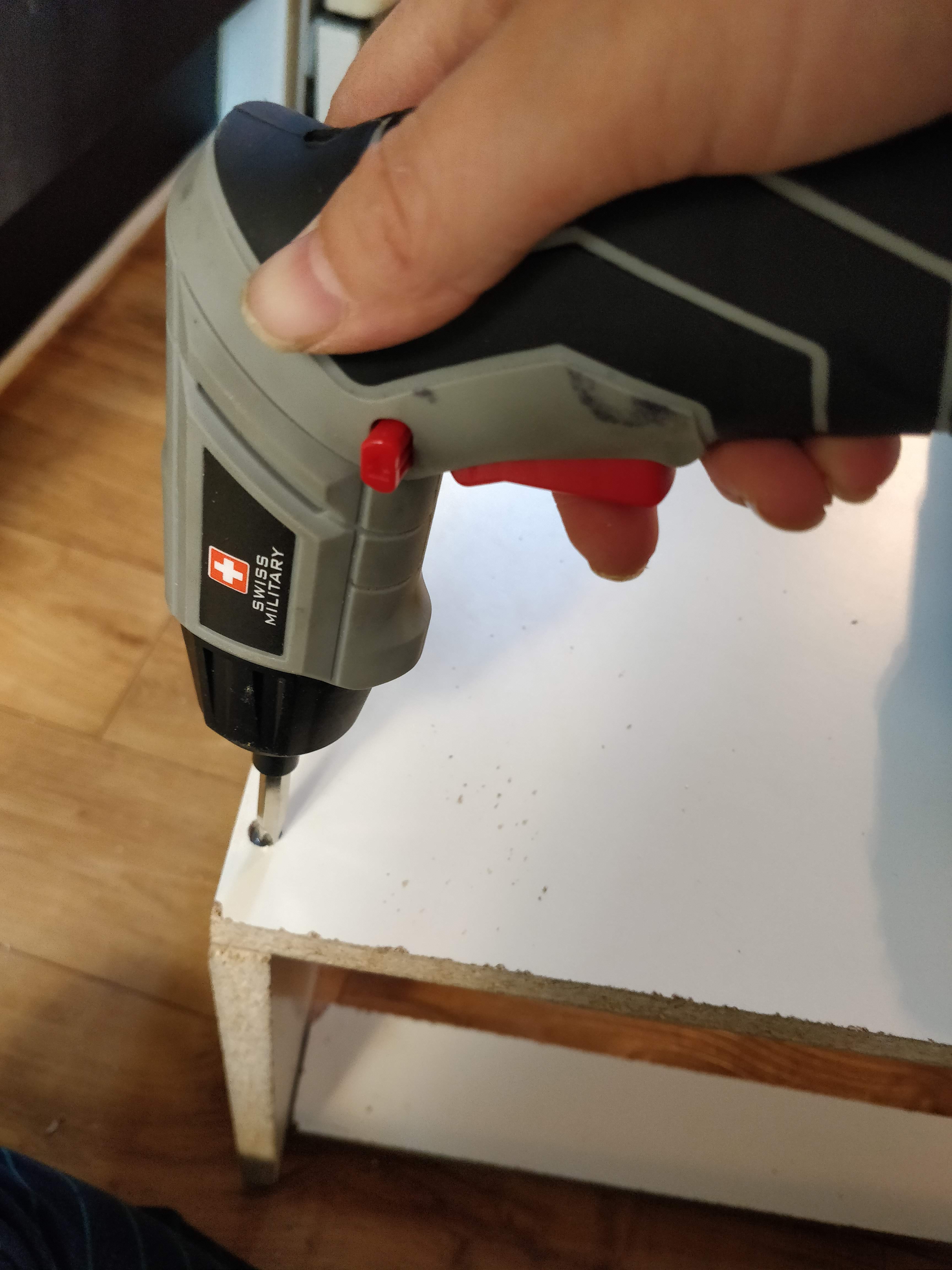 조립에 가장 중요한 점은 이중 드릴날로 나사의 길을 내준 다음 나사를 조여 주는 것입니다.