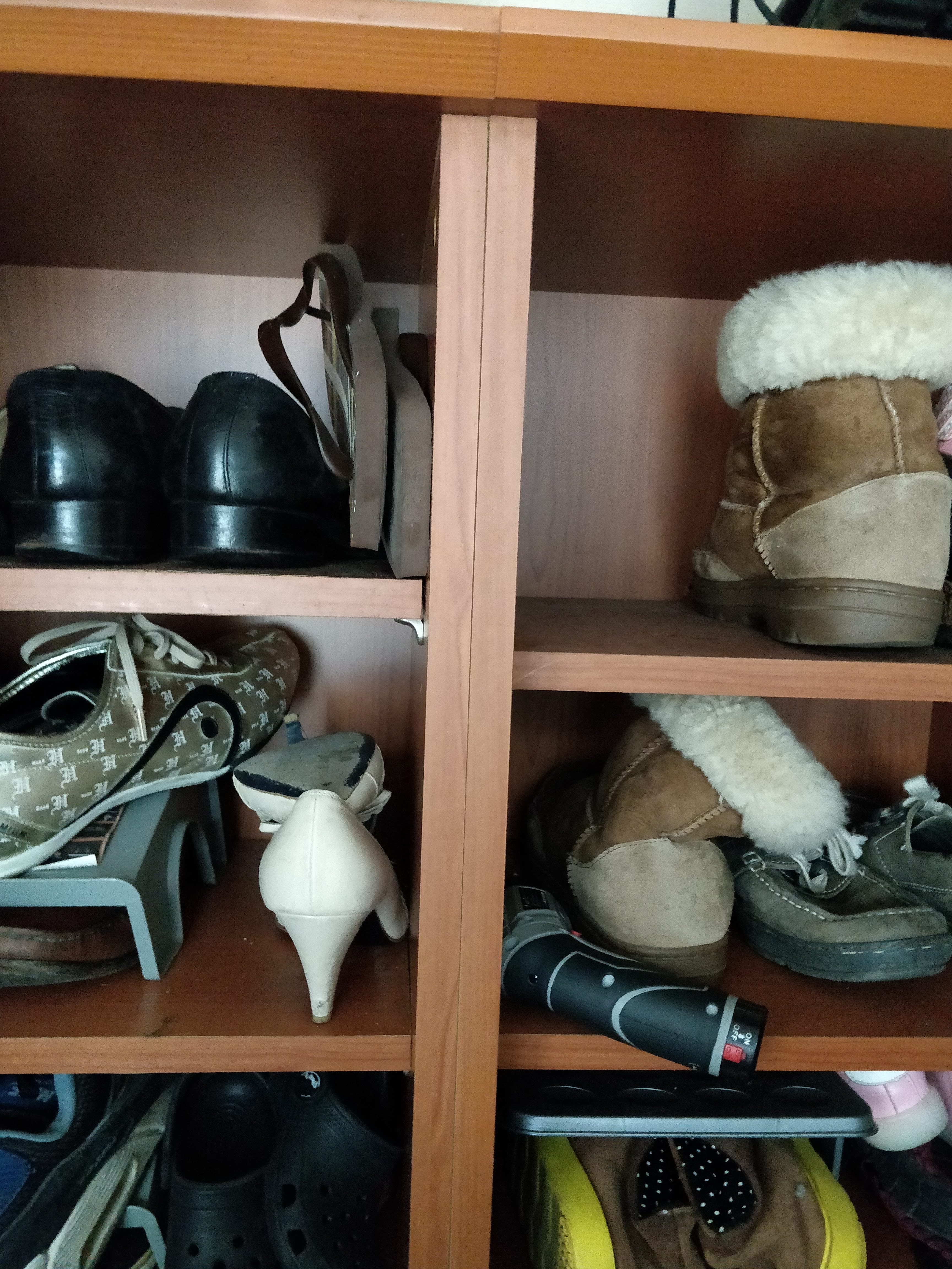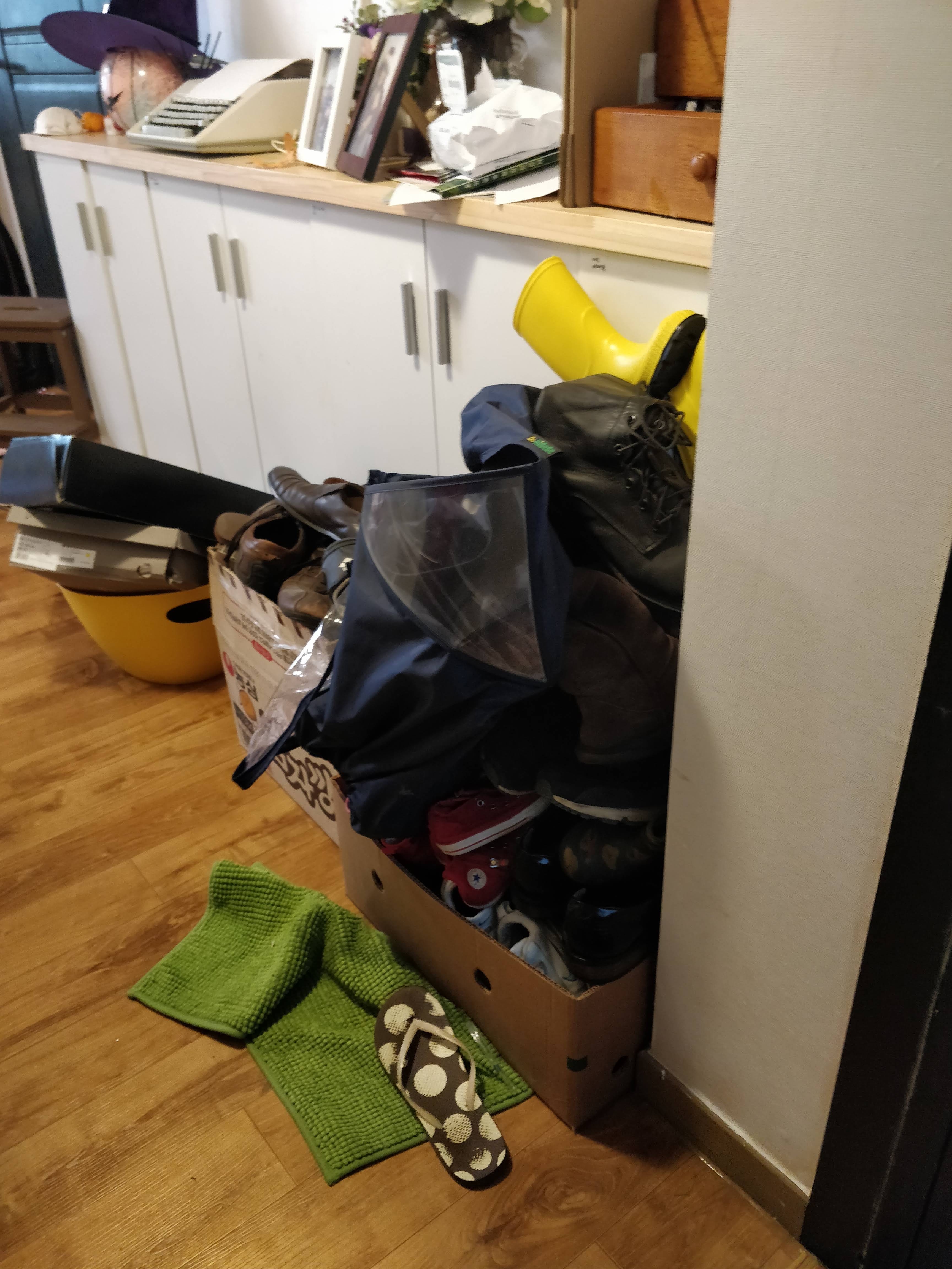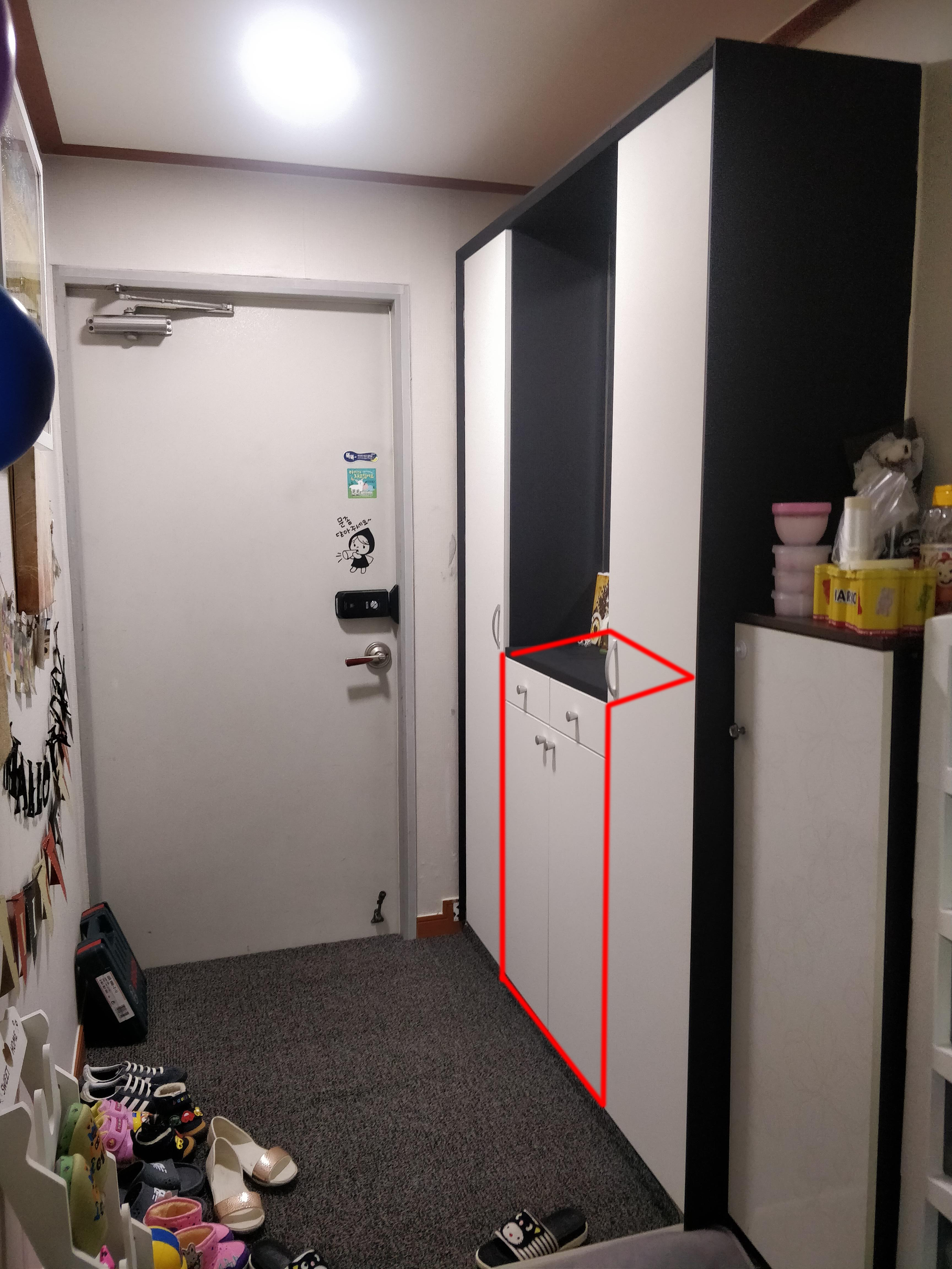 신발장 윗부분을 저렇게 난잡하게 올리지 않게 신발장 아래쪽을 올려 신발을 정리하는 구간을 만들자는 계획입니다.
