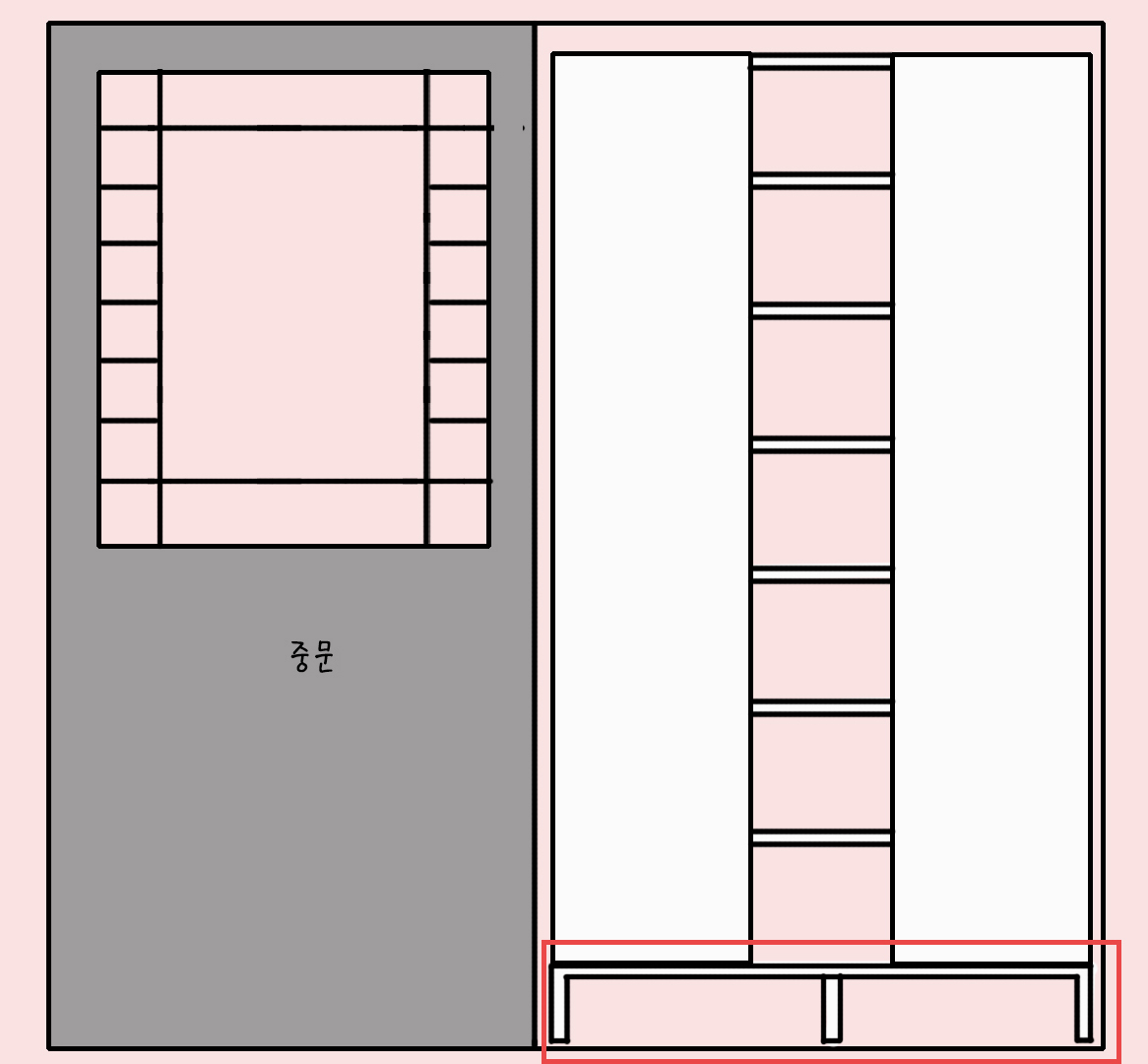 우선 붙박이장 문으로 밑쪽 신발 넣는 곳을 만들어 볼까요~