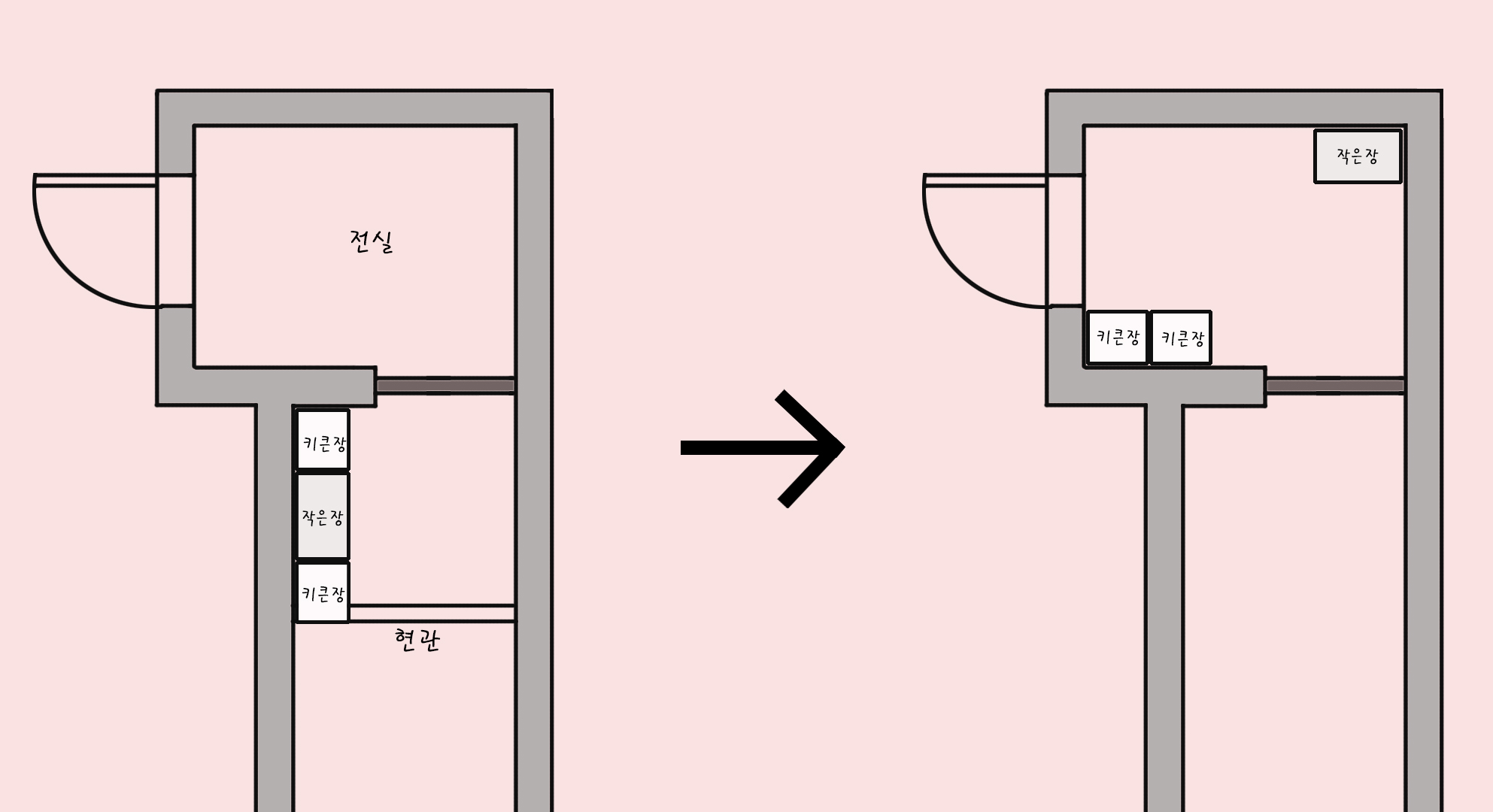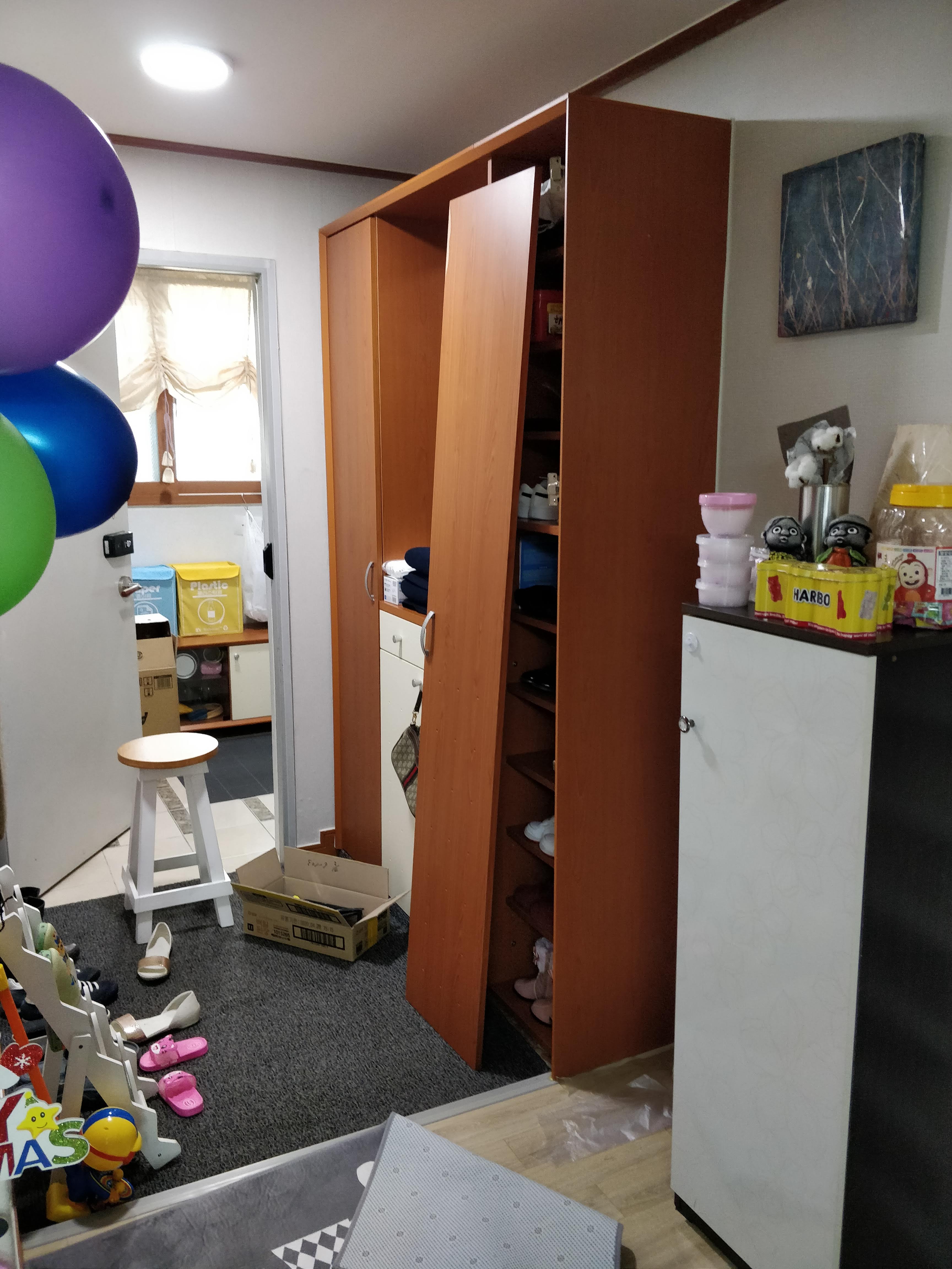 근데 이 신발장이 있는 공간이 아깝다고 여긴 어머님께서 신발장을 아예 전실에 놓고 싶어 하셔서