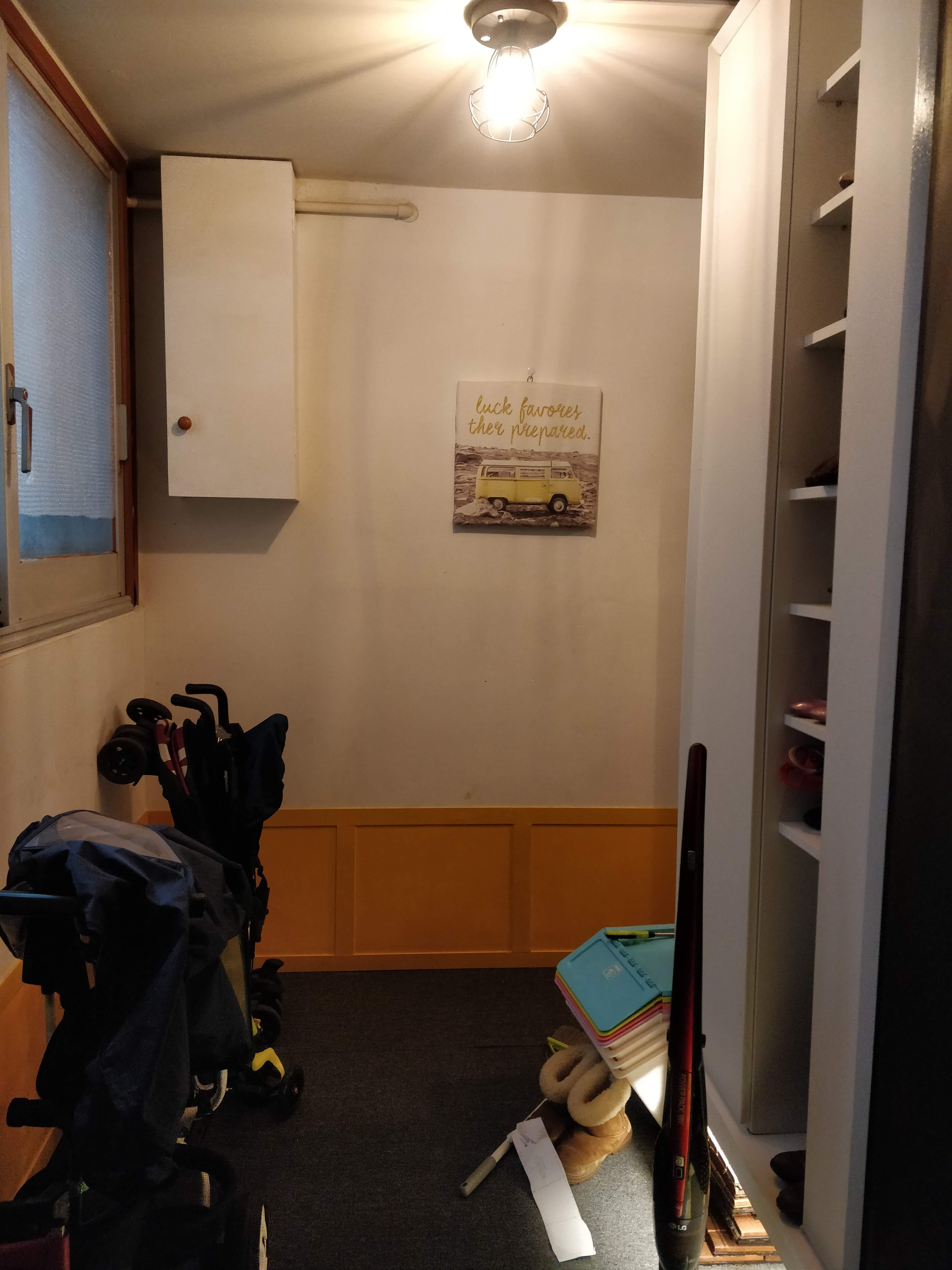 문제는 보여드리지 않은 전실 구간이에요. 아이가 없을 때는 그럭저럭 괜찮았어요. 그래 봐야 신발장과 재활용 쓰레기만 모아 놓는 구간이니까요.