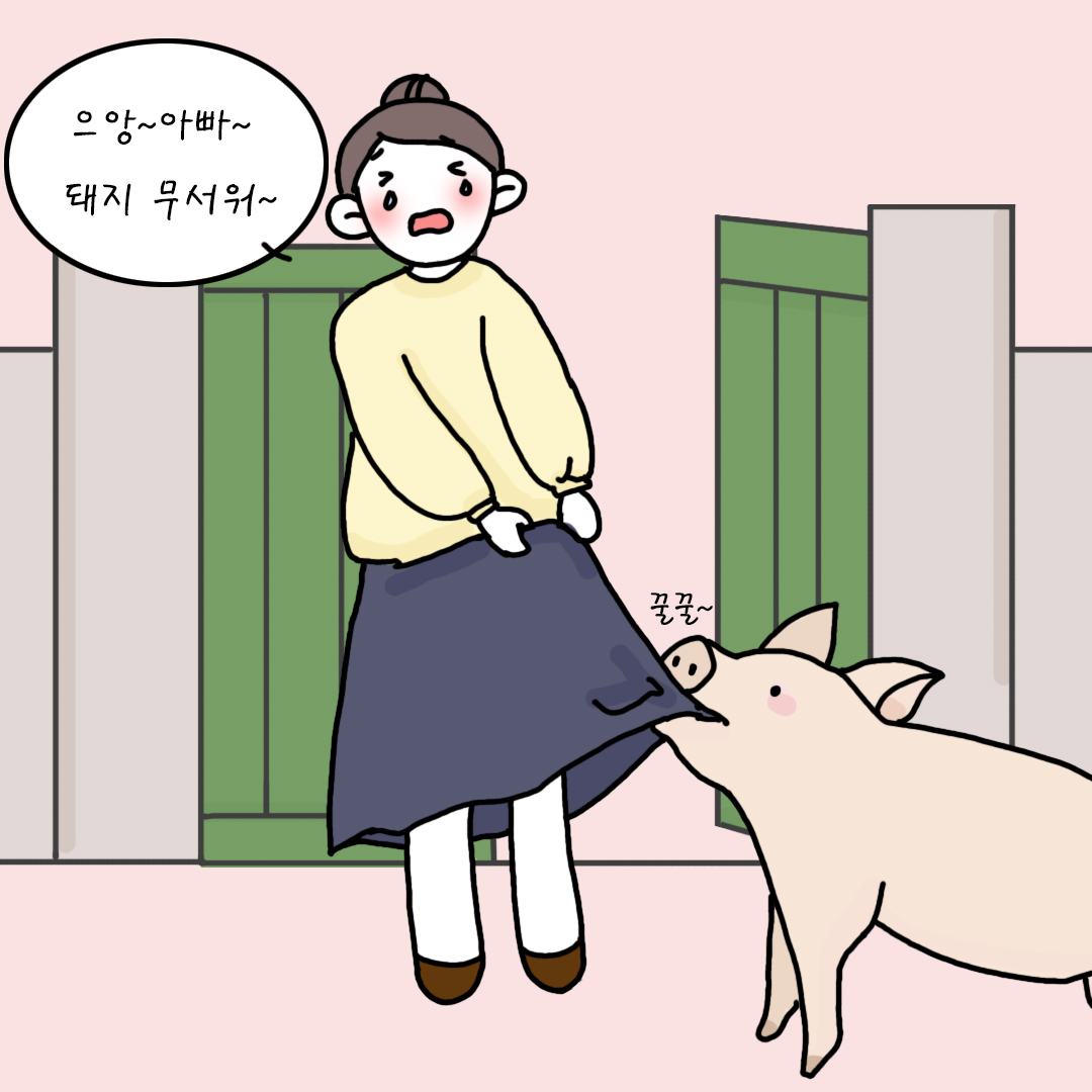 돼지가 치맛자락을 물고 안 놔줘 무섭다며 엉엉 우는 꿈'을 꾸셨다고 합니다.