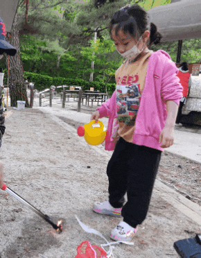 불 끄는 원리가 궁금한 쿠앙이! 이 기회에 우리 소방요원 불 끄는 연습을 해봅니다.