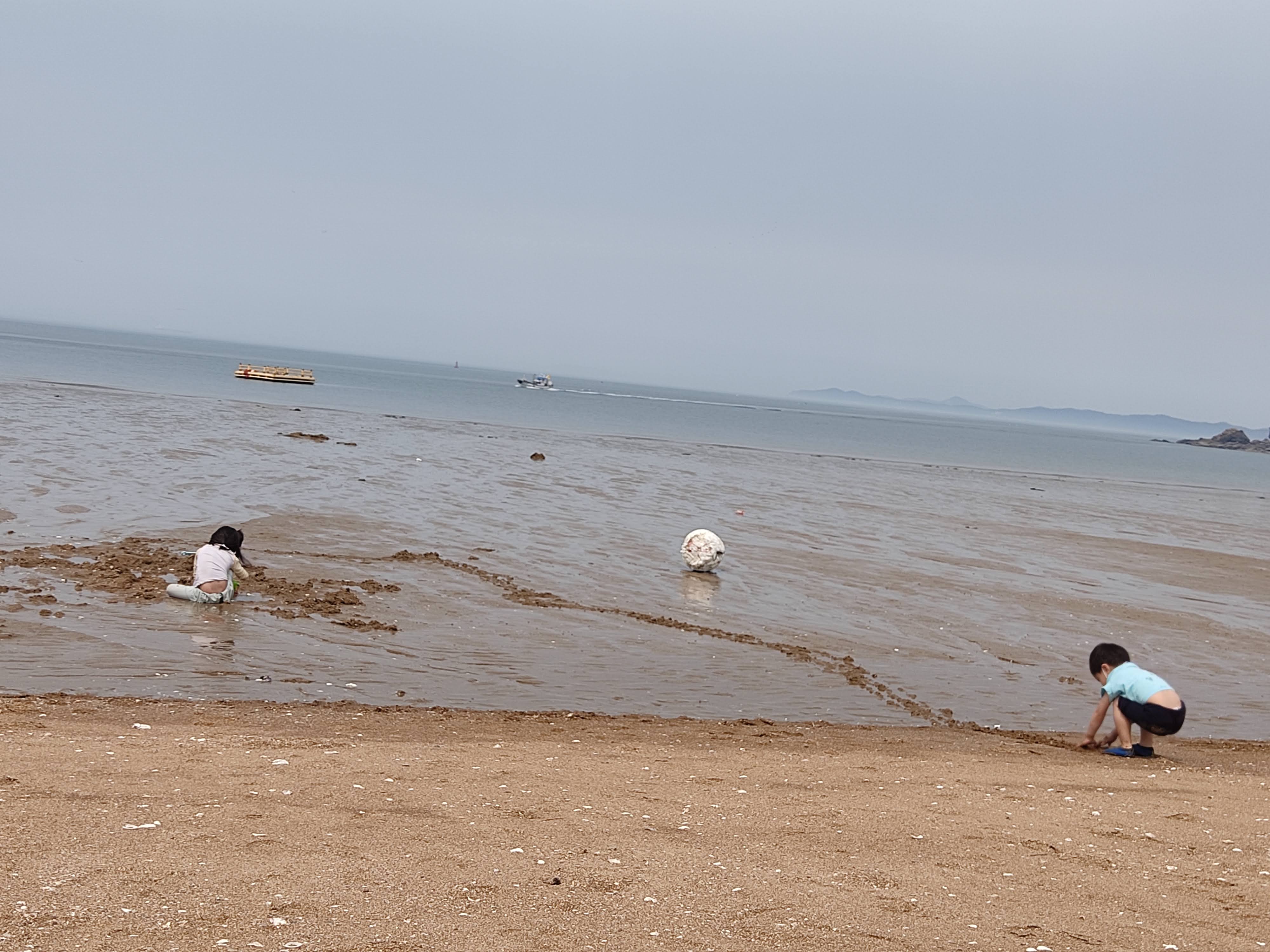 아이들은 예쁜 조개 찾기 놀이를 시작합니다.
