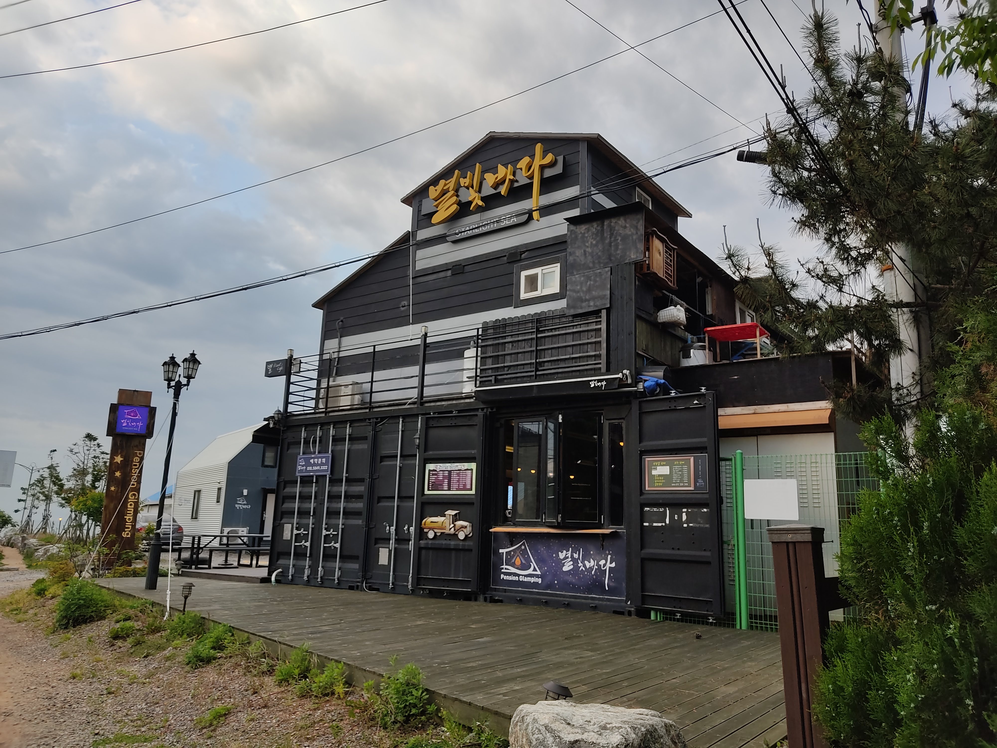 해변으로 가는 길로 가다 보면 별빛 바다라는 글램핑장이 나오는데 여기서 웬만한 장작, 식품, 그리고 커피까지 구입할 수 있어요. 하지만 장작 비싸고 (16,000원) 물 많이 먹었어 있었어요.