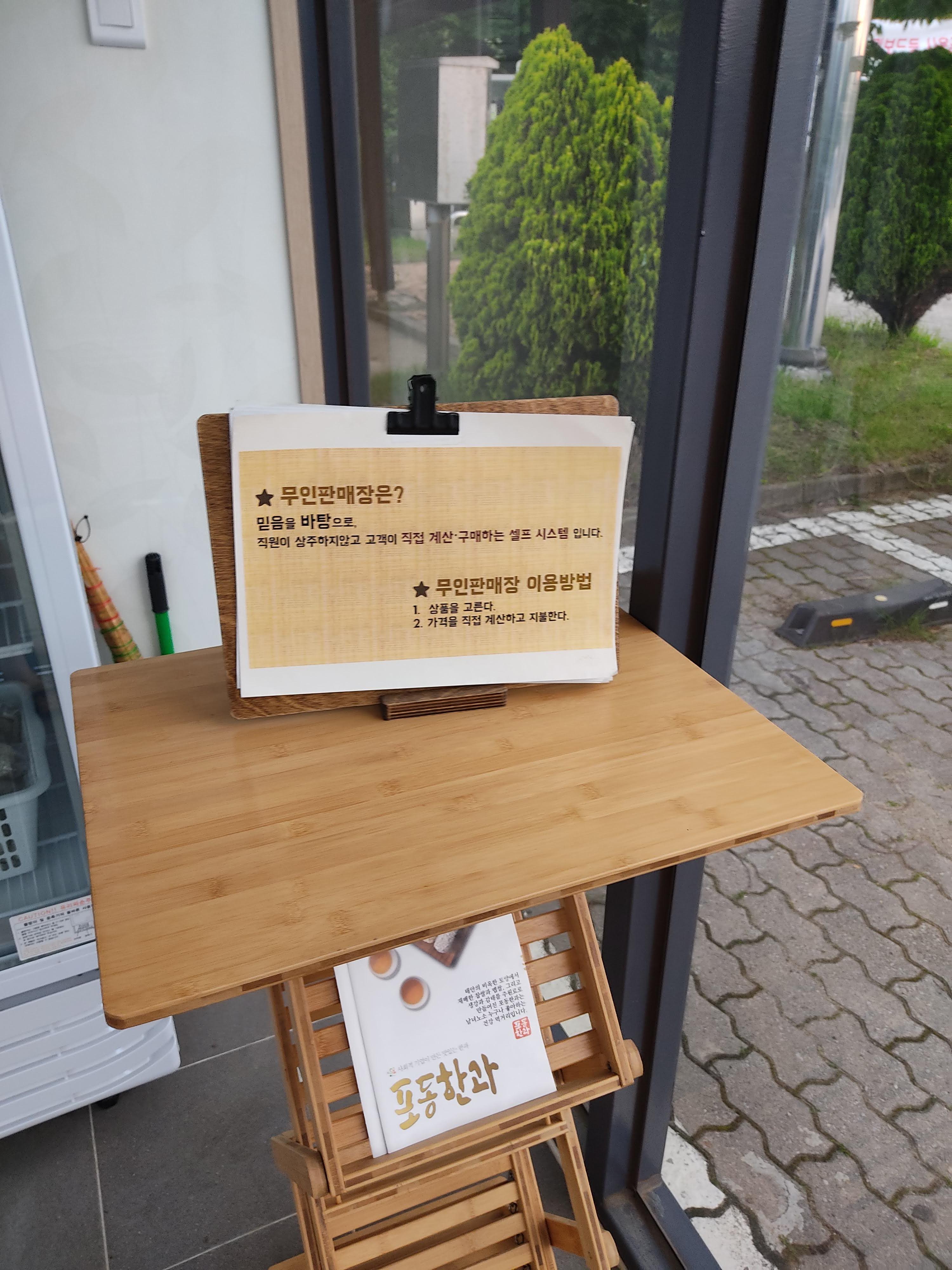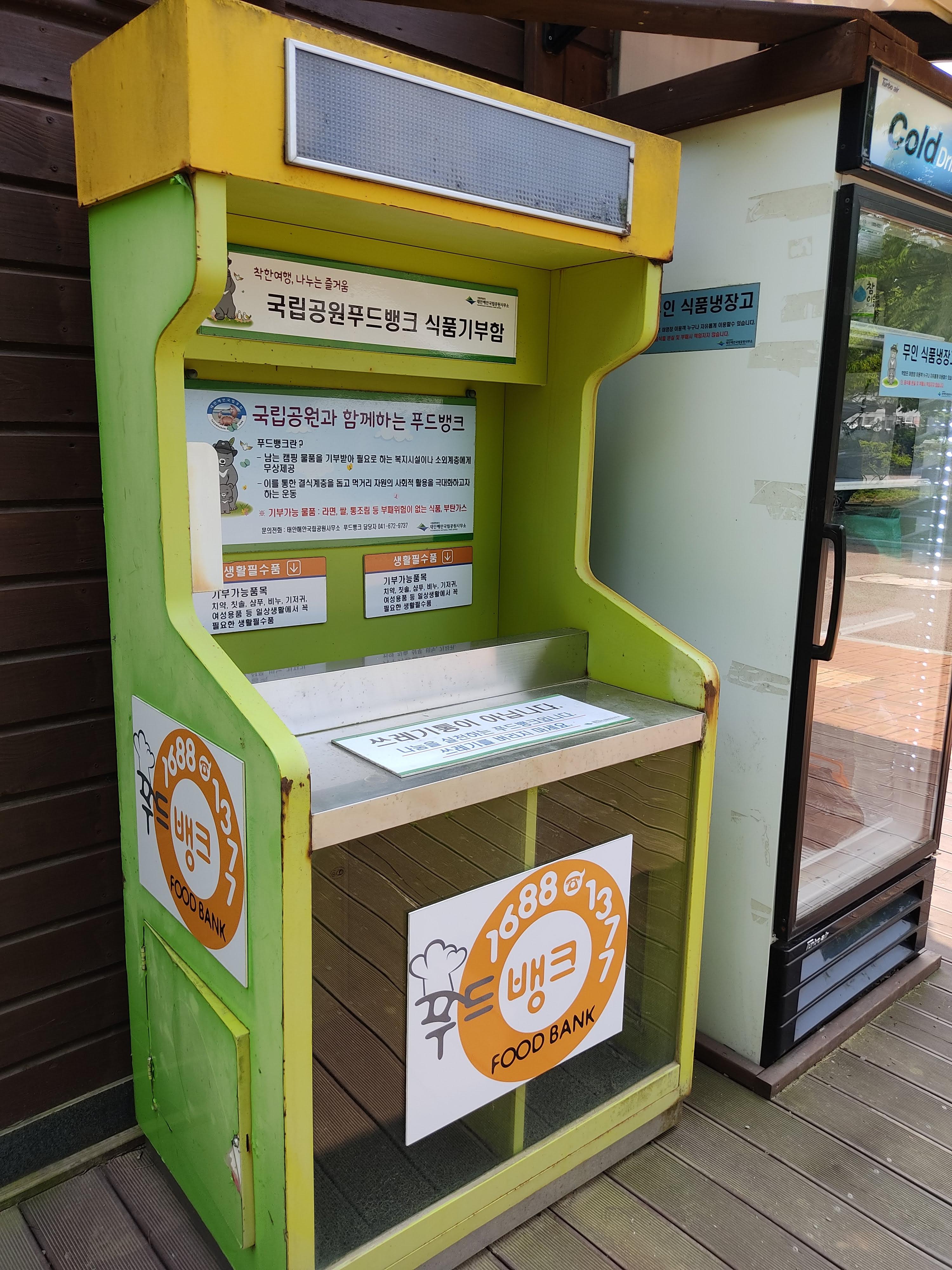 도난의 위험은 있지만 캠핑용 냉장고가 없으신 분들은 무인 냉장고를 활용할 수 있어요. 옆에 식품 기부함도 있어요
