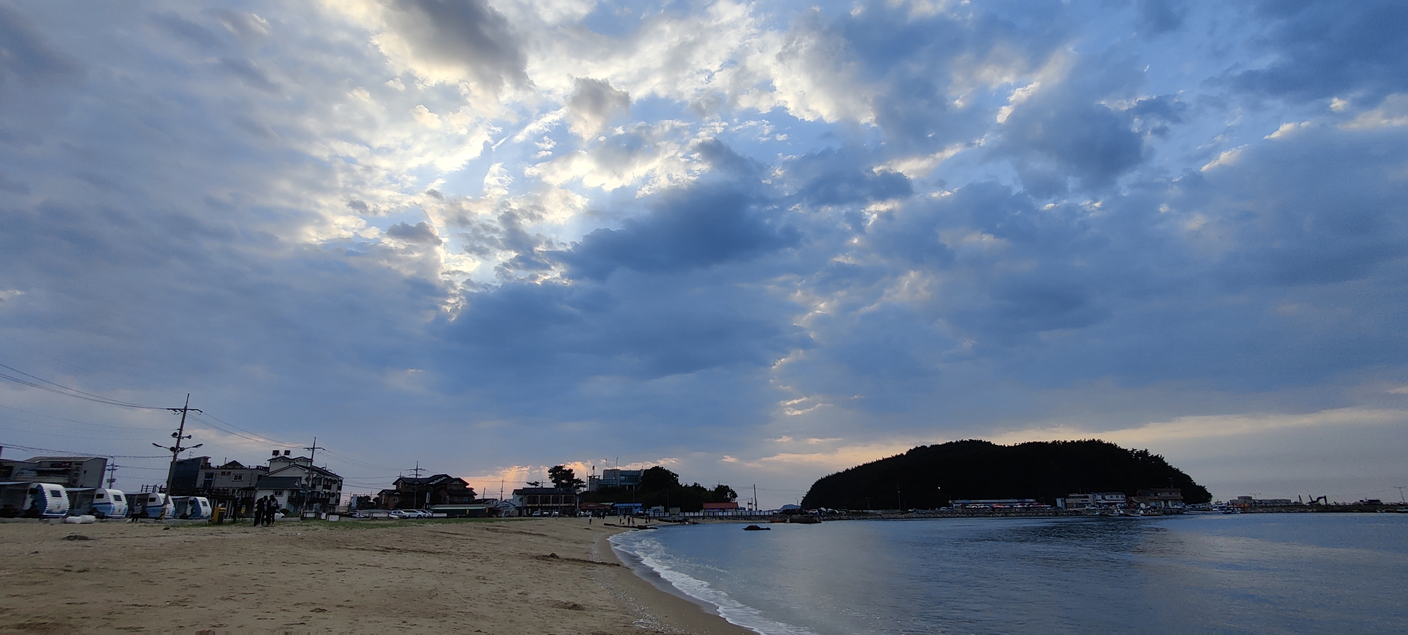 캠핑장에 도착하자마자 보채는 아이들 루나군에게 텐트를 맡기고 해변으로 떠나봅니다.