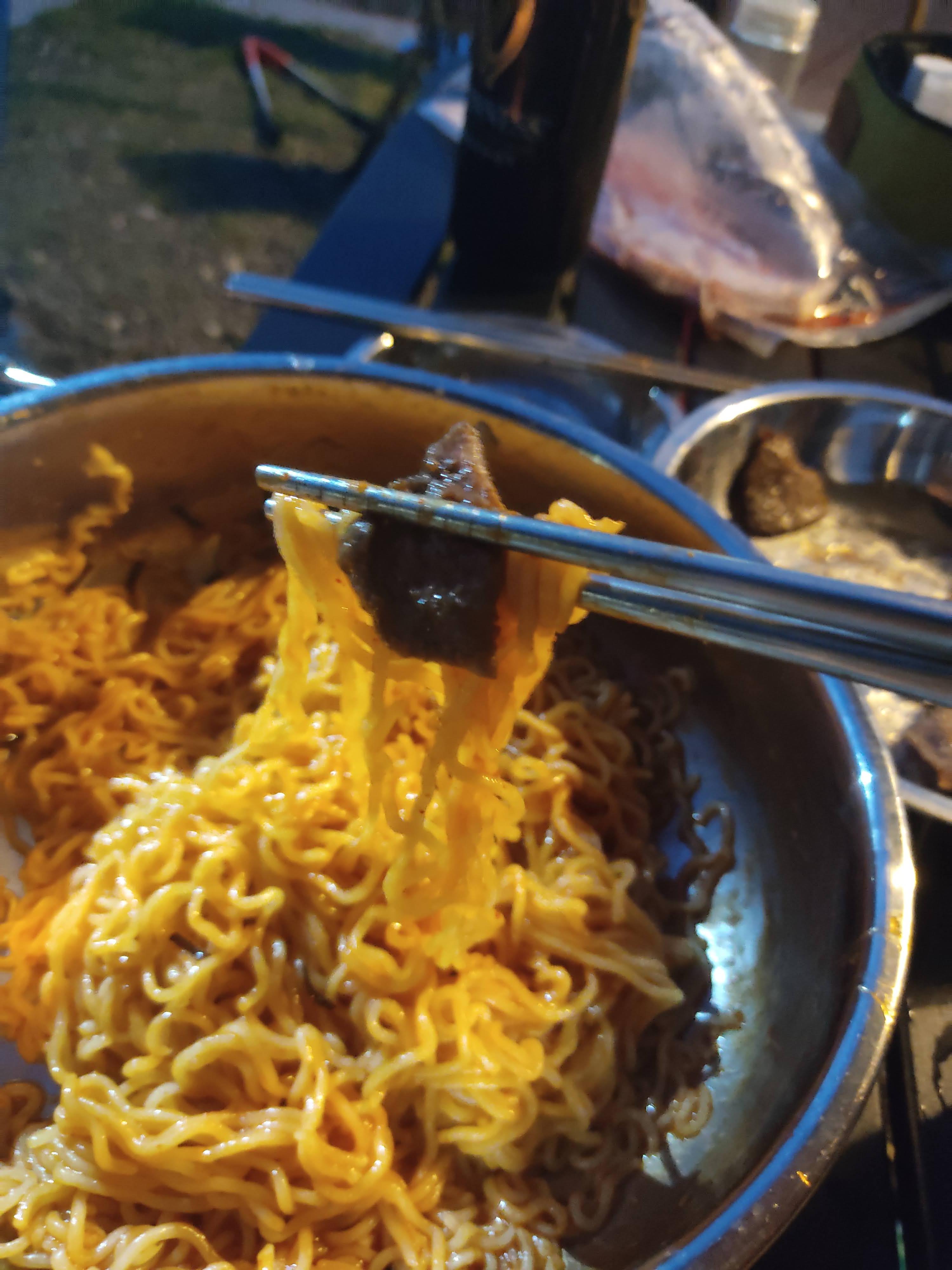 옆에선 무언가 끓이는데 그렇죠!! 소고기는 비빔면과 함께!!