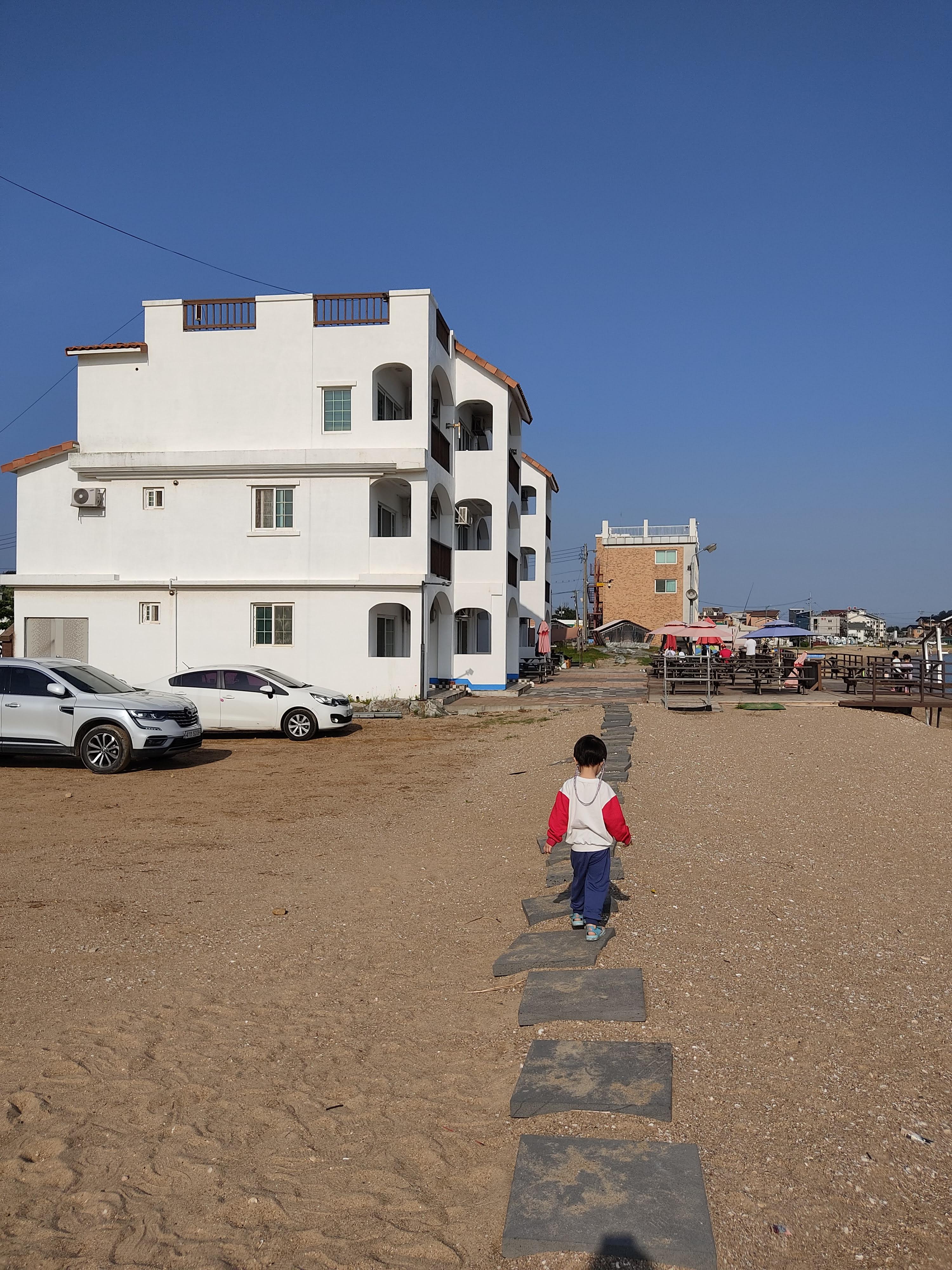 길을 건너면 예쁜 바닷가 펜션이 나와 길을 따라 돌아올 수 있습니다.